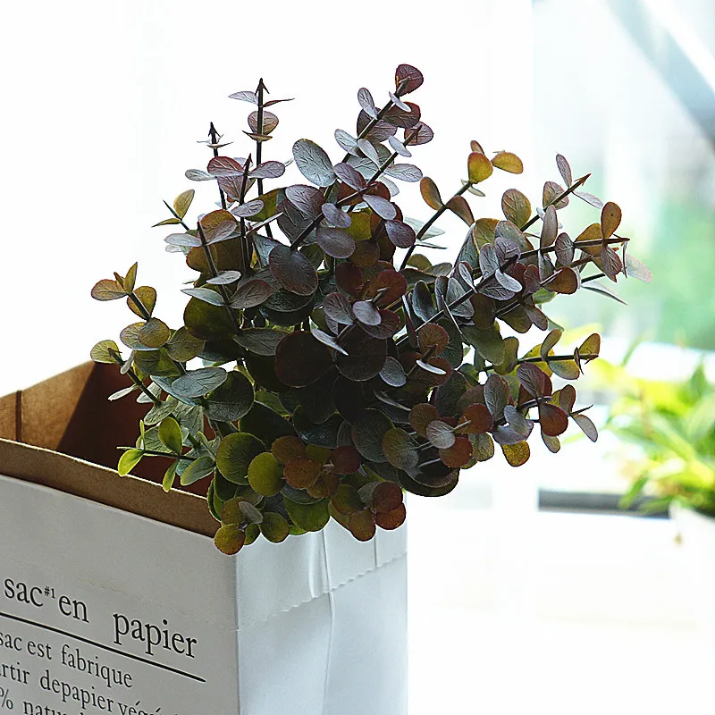 Размер листа эвкалипта: длина: 36 см Размер розы: диаметр цветка около 12 см, длина около 75 см Количество листьев эвкалипта: 6 штук 1 пучок Количество роз: 1 шт.