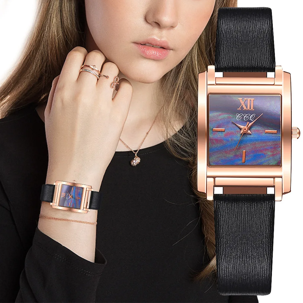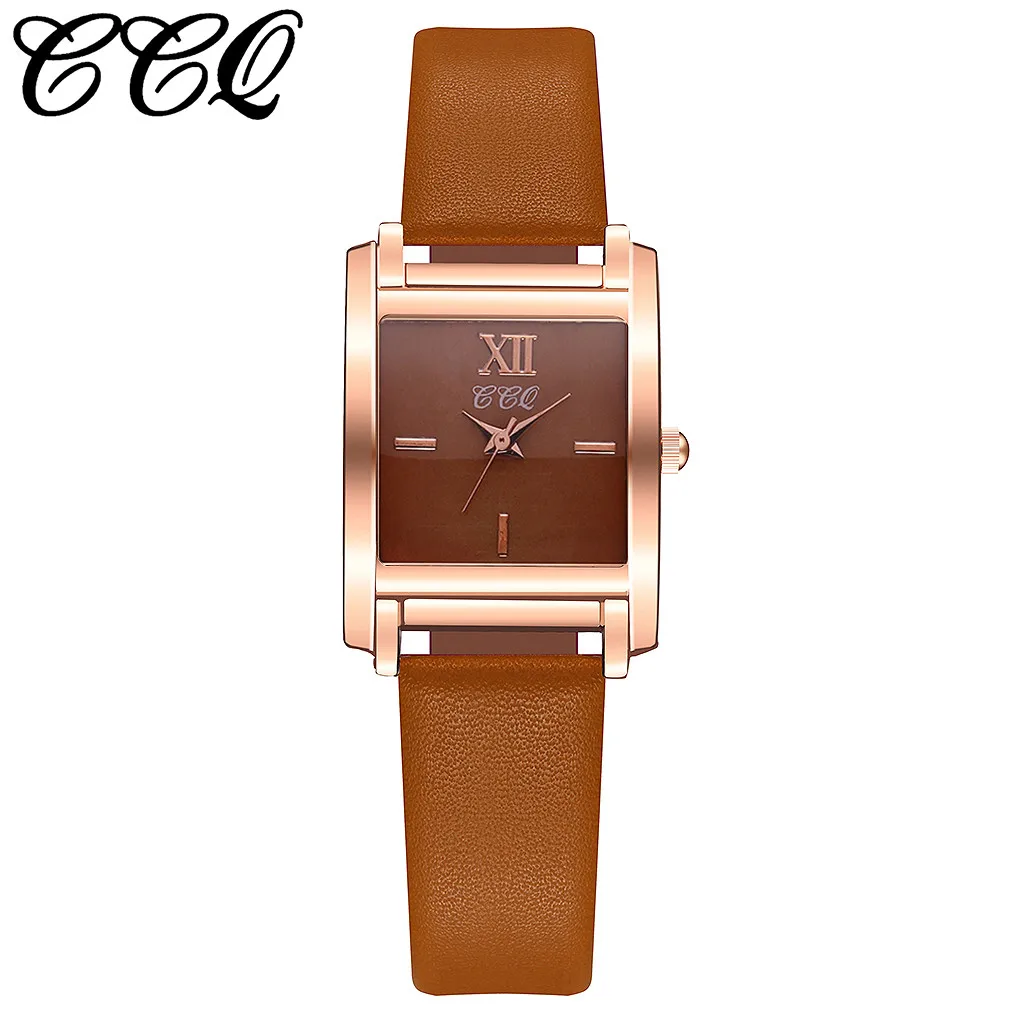 CCQ женские часы, женские винтажные кварцевые часы с кожаным ремешком, чехол из сплава, повседневные простые квадратные часы, женские часы, Relogio Feminino 2019