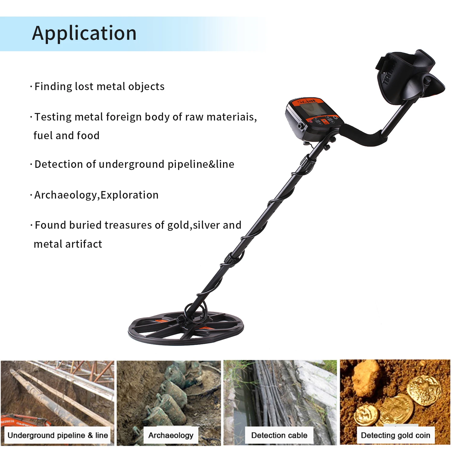 Применение: тестирование металлического инородного тела сырья, топлива и продуктов питания, обнаружение подземного трубопровода и линии, археология, разведка, найденные погребенные сокровища золотых, серебряных и металлических артефактов.
