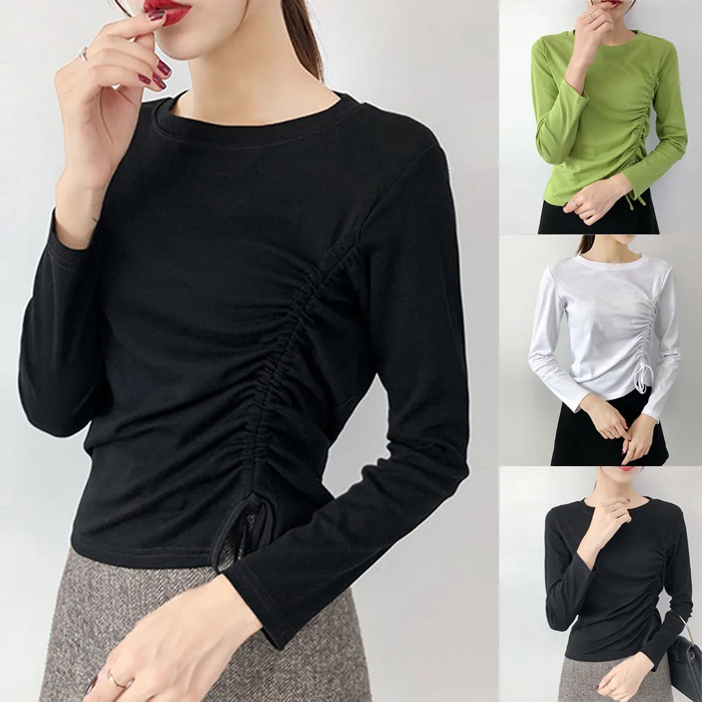 Особенности:Одежда с длинными рукавамиСвободныйСо складками на рост, С о-образным вырезом,Стильный и модный дизайн,Весна, осень и зимаПовседневные топы.