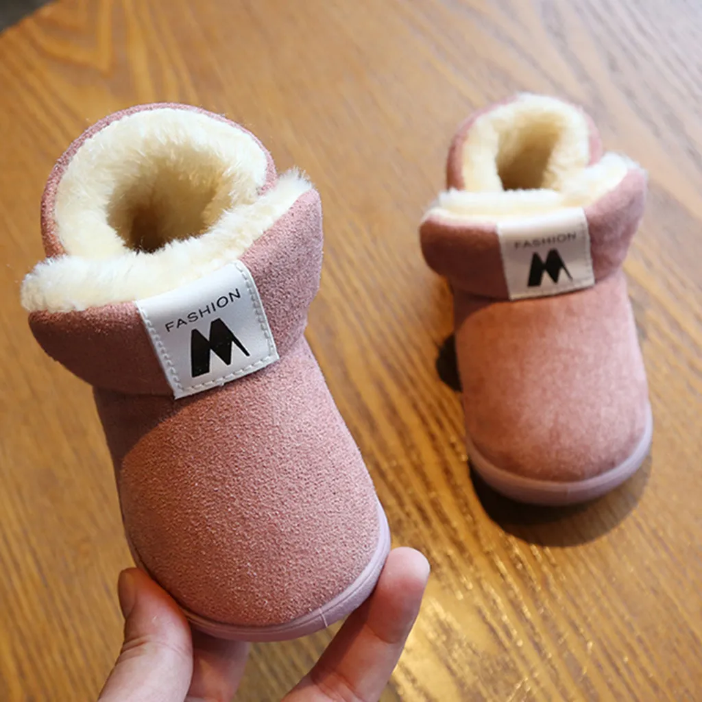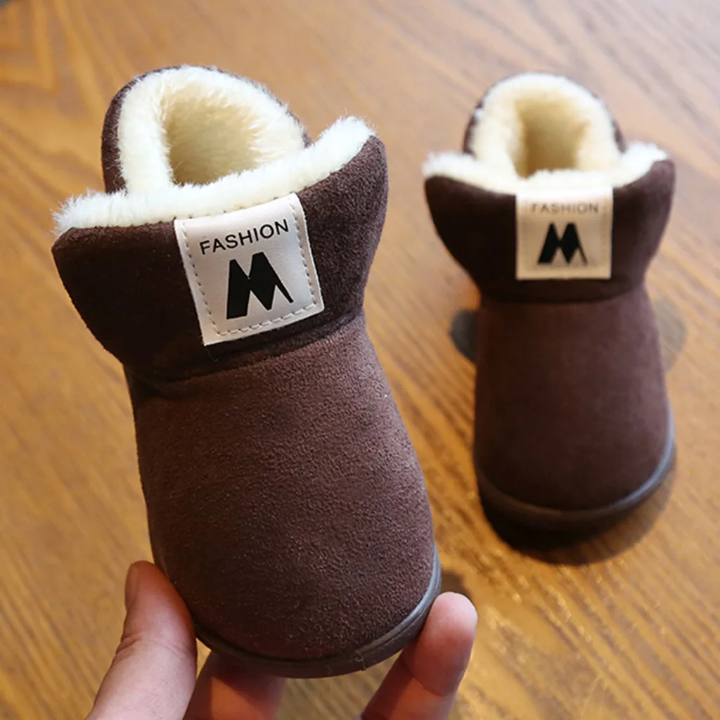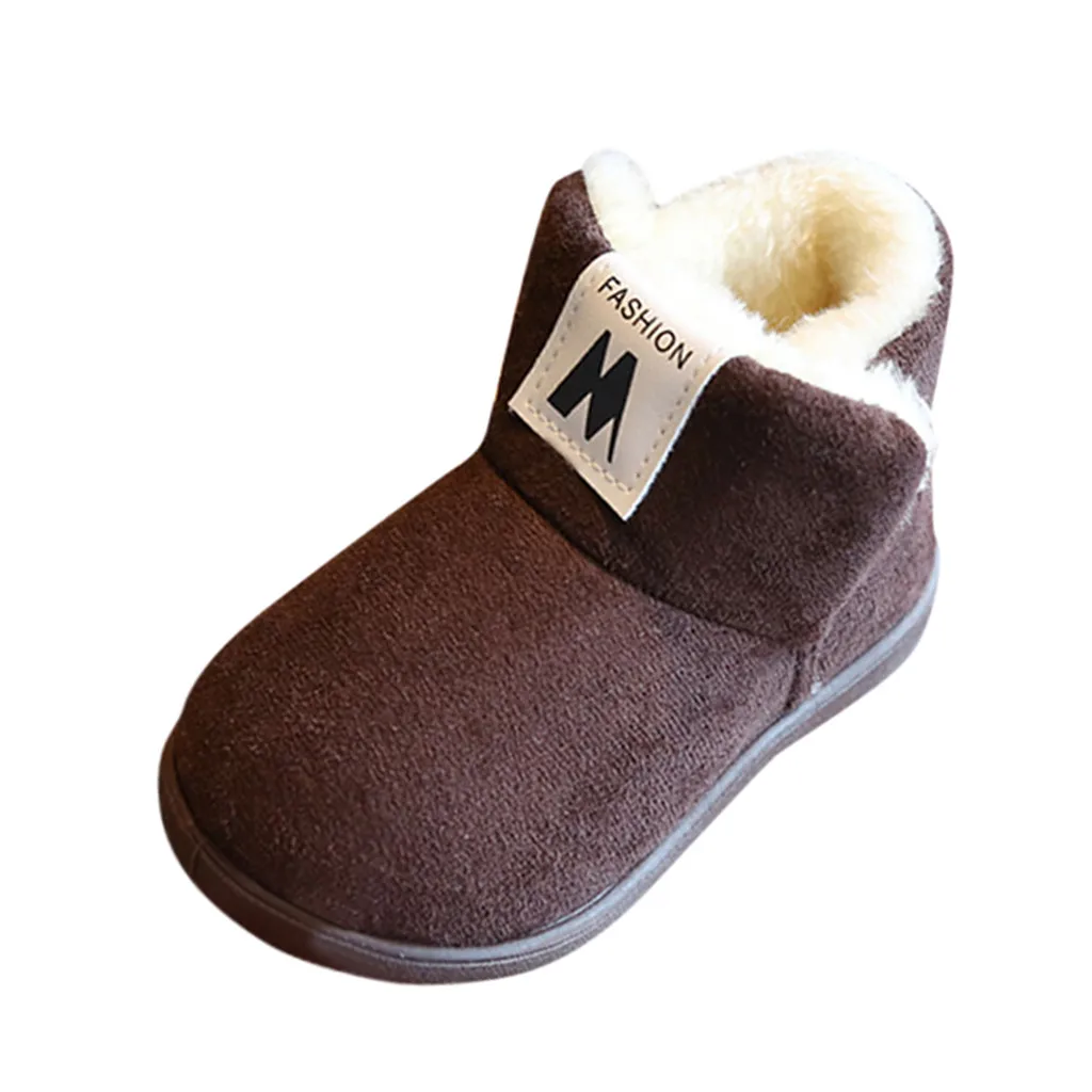 Детские однотонные зимние теплые спортивные короткие ботинки для маленьких мальчиков и девочек