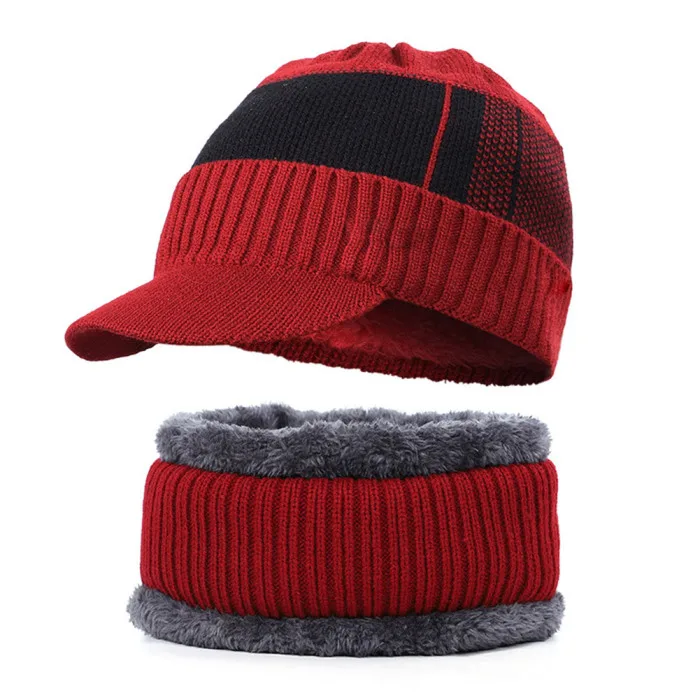 Новинка, Мужская зимняя теплая шапка, вязаная шапка с флисовой подкладкой, мягкая дышащая шапка с петлями для шарфа, набор BF88
