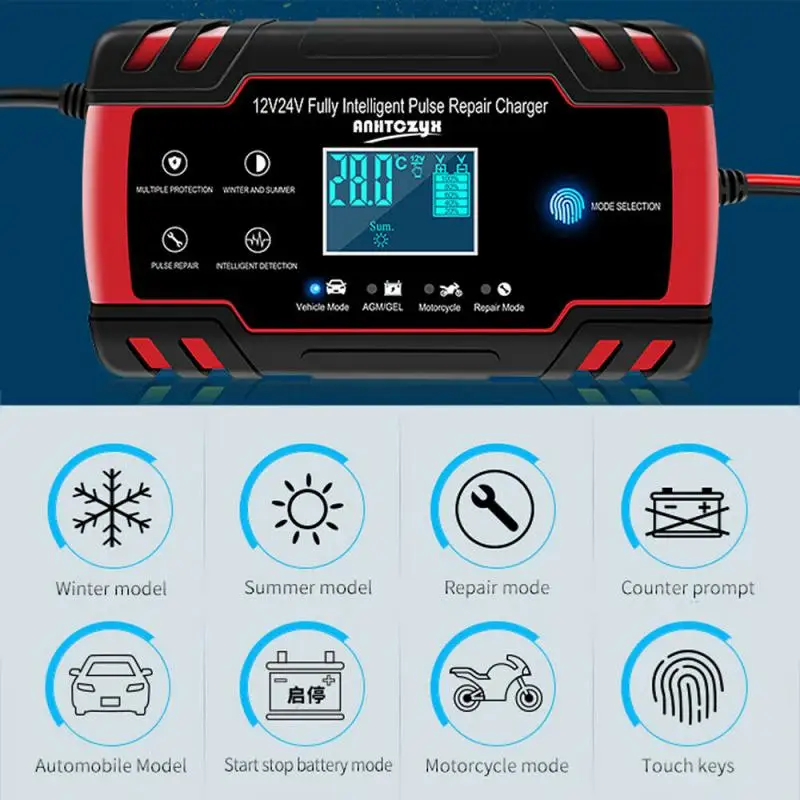 Типы батарей: большинство типов свинцово-кислотных батарей, включая кальций, гель и AGM, влажные, EFB и т. Д.