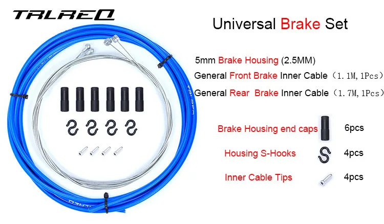 5 мм корпус тормоза * 2,5 м + ТРОС переднего тормоза * 1,1 м + ТРОС ЗАДНЕГО ТОРМОЗА * 1,7 м + тормозные наконечники корпуса * 6 шт. + Крючки S * 4 шт. + Наконечники внутреннего тормозного троса * 4 шт.