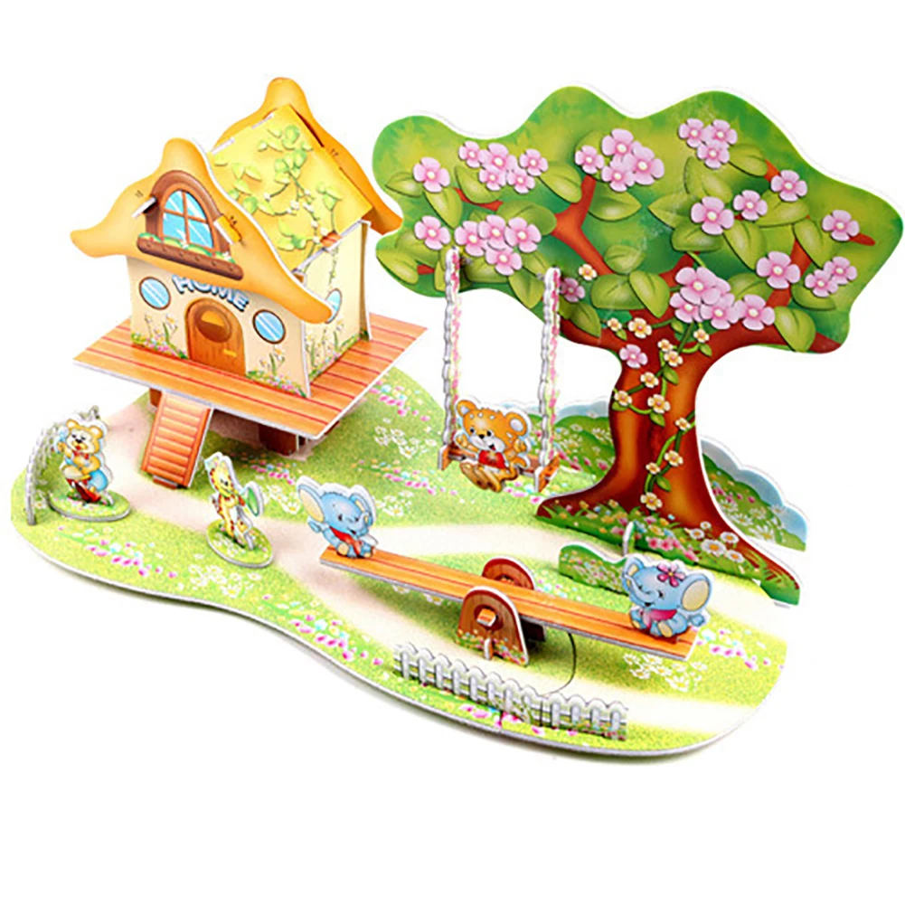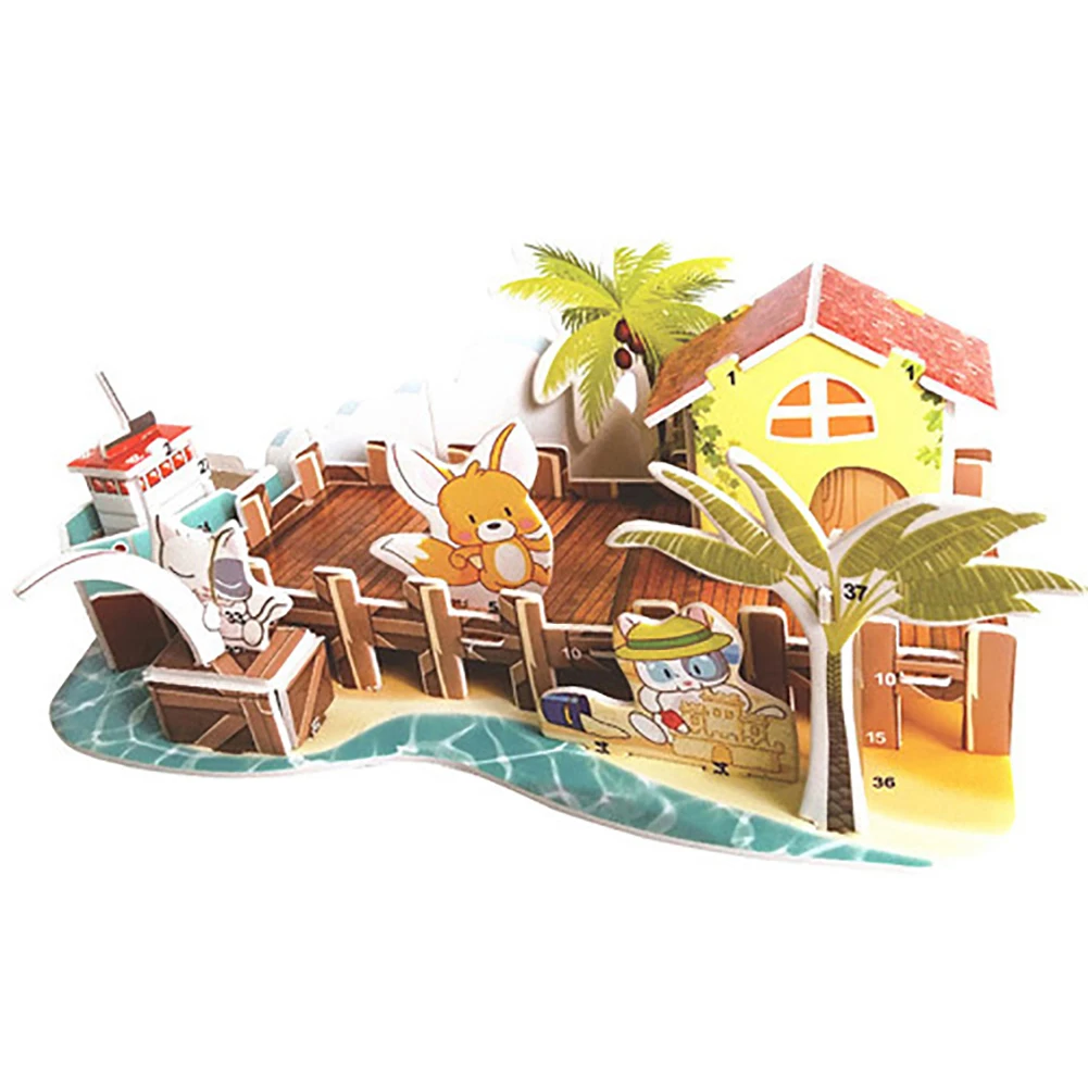Kids 3D DIY Puzzle Toy Fruit Flower House Wharf Model Building Puzzles Intelligent Kids Toy Educational Toy