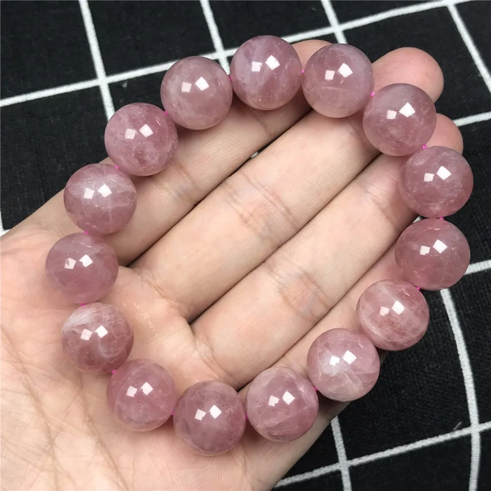 Женский браслет из натурального розового кварца, 14 мм, с розовыми кристаллами и круглыми бусинами, Подарочные тянущиеся модные ювелирные изделия AAAAA
