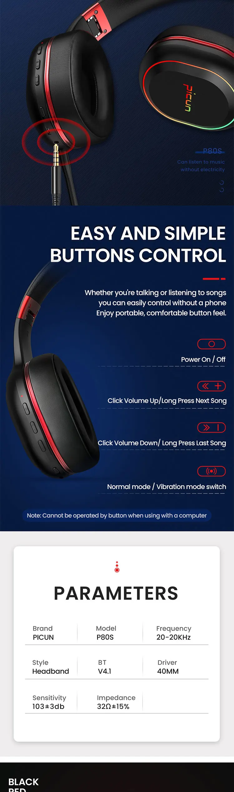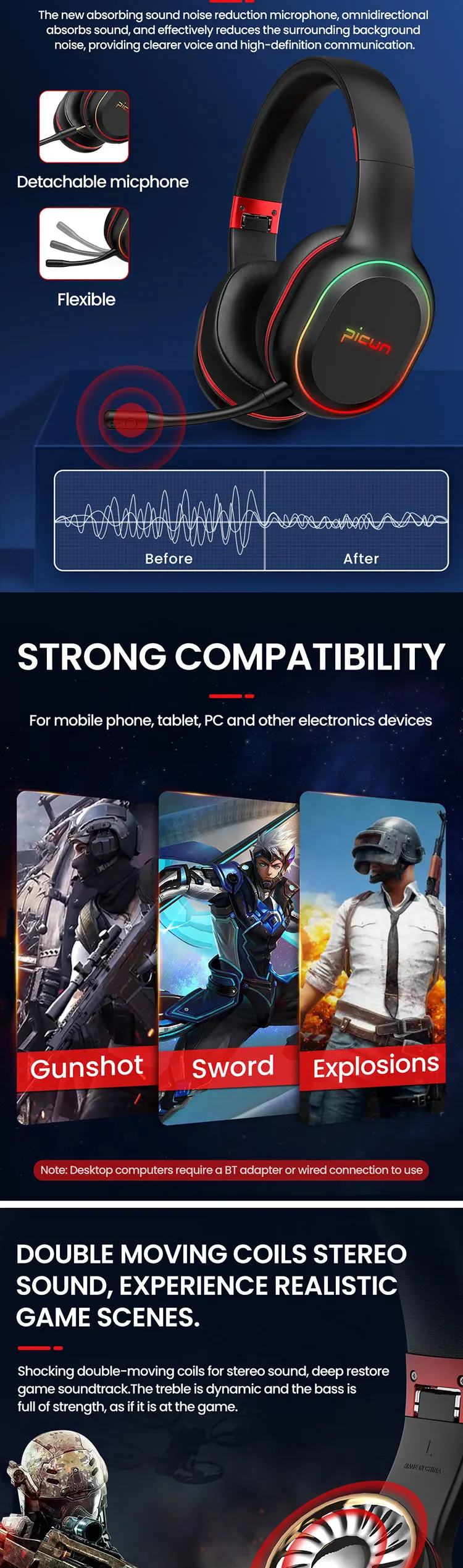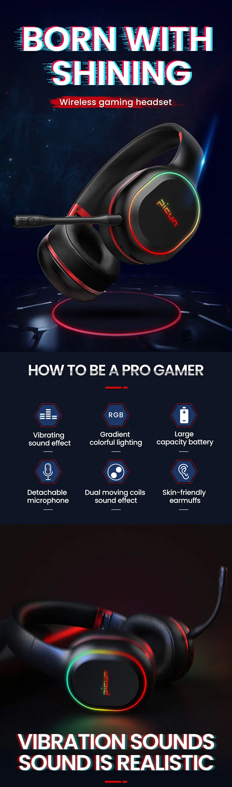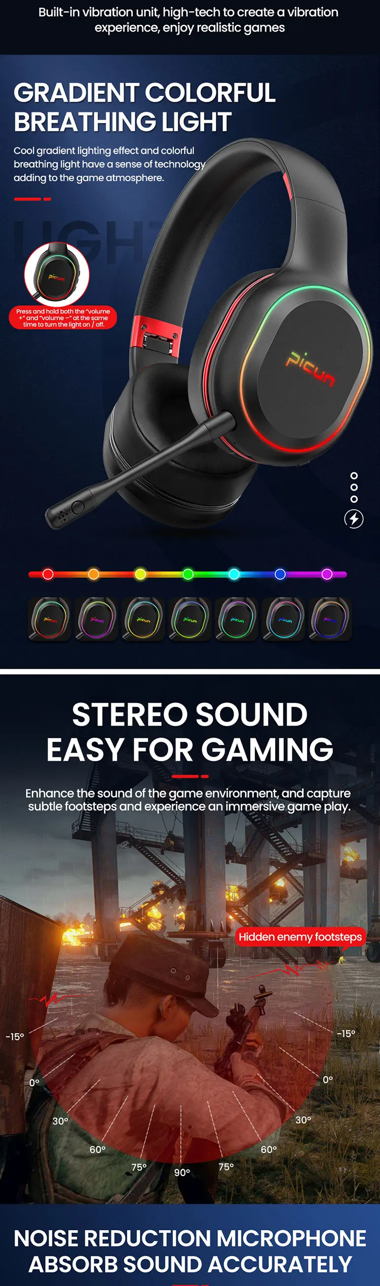 Новейшие мобильные Игровые наушники Picun P80S, игровая bluetooth-гарнитура с вибрацией, беспроводные съемные вибрационные наушники с микрофоном