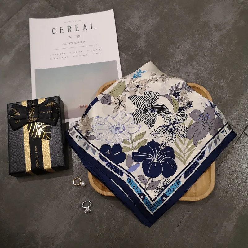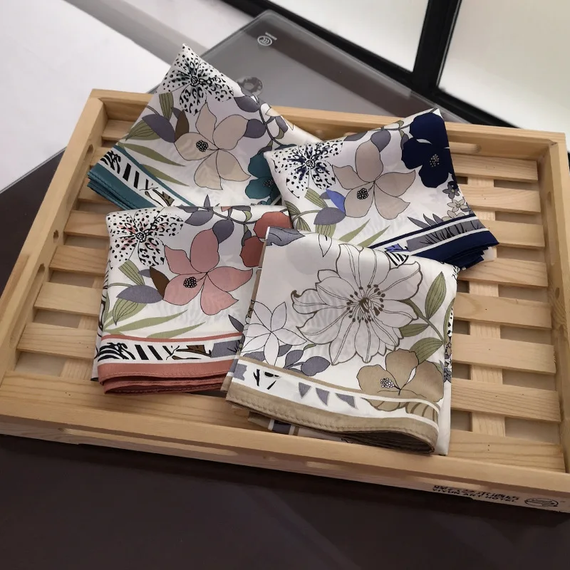 Артикул: Шелковый шарф Состав: 100% шелк Размеры: 53*53 см Цвет: 4 цвета