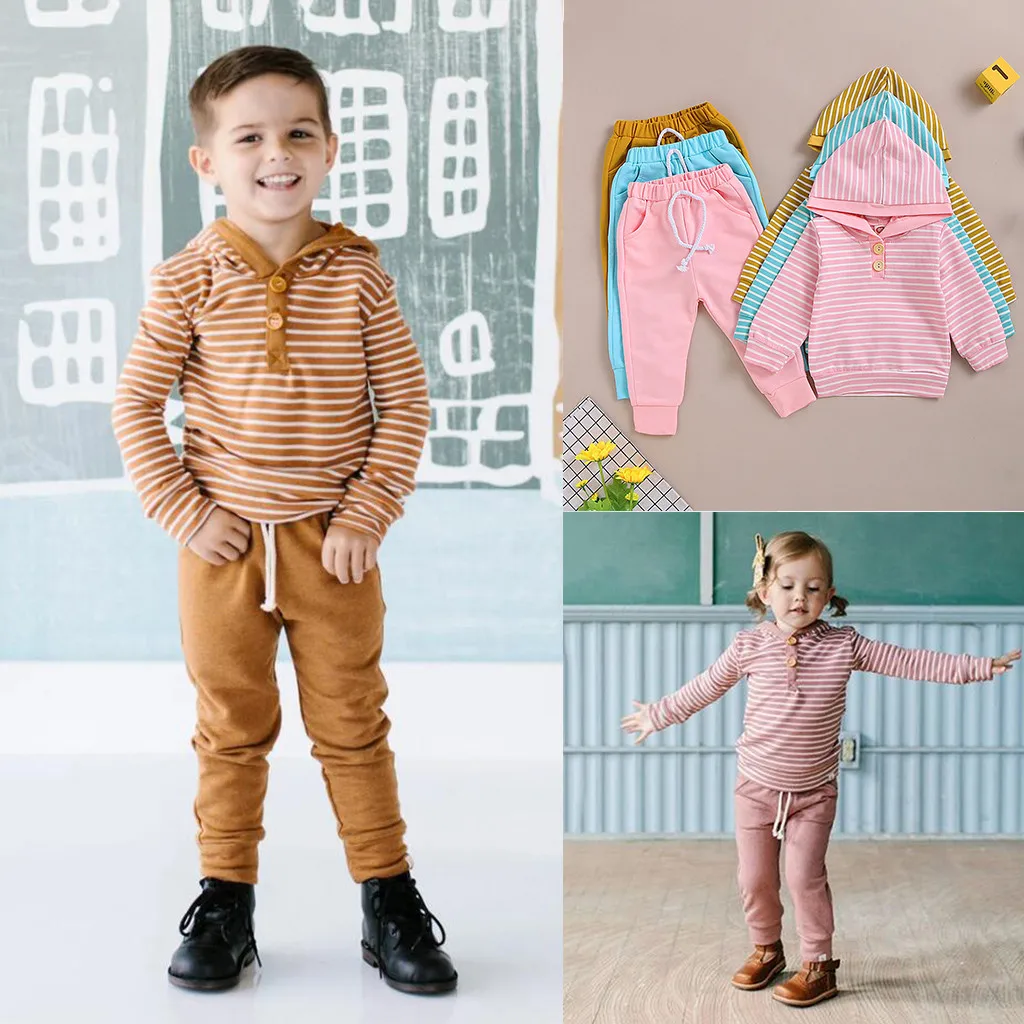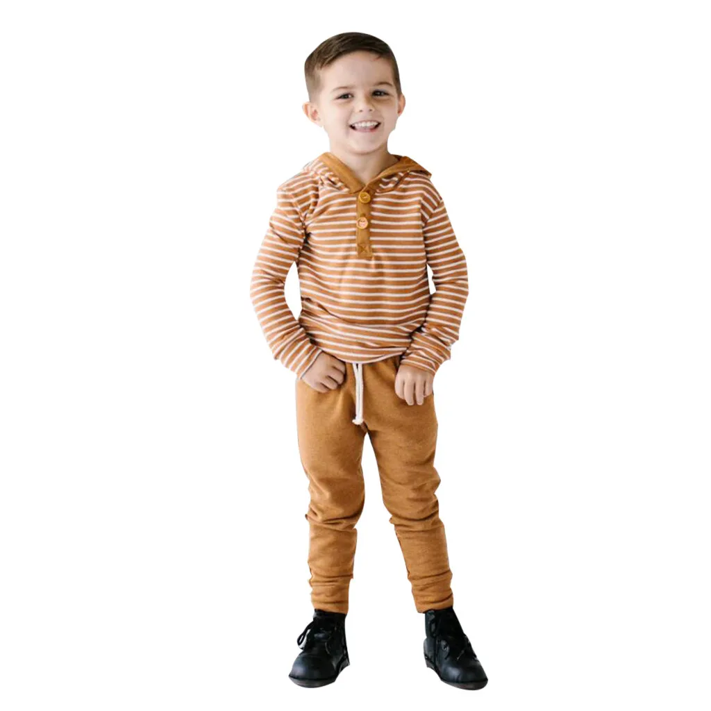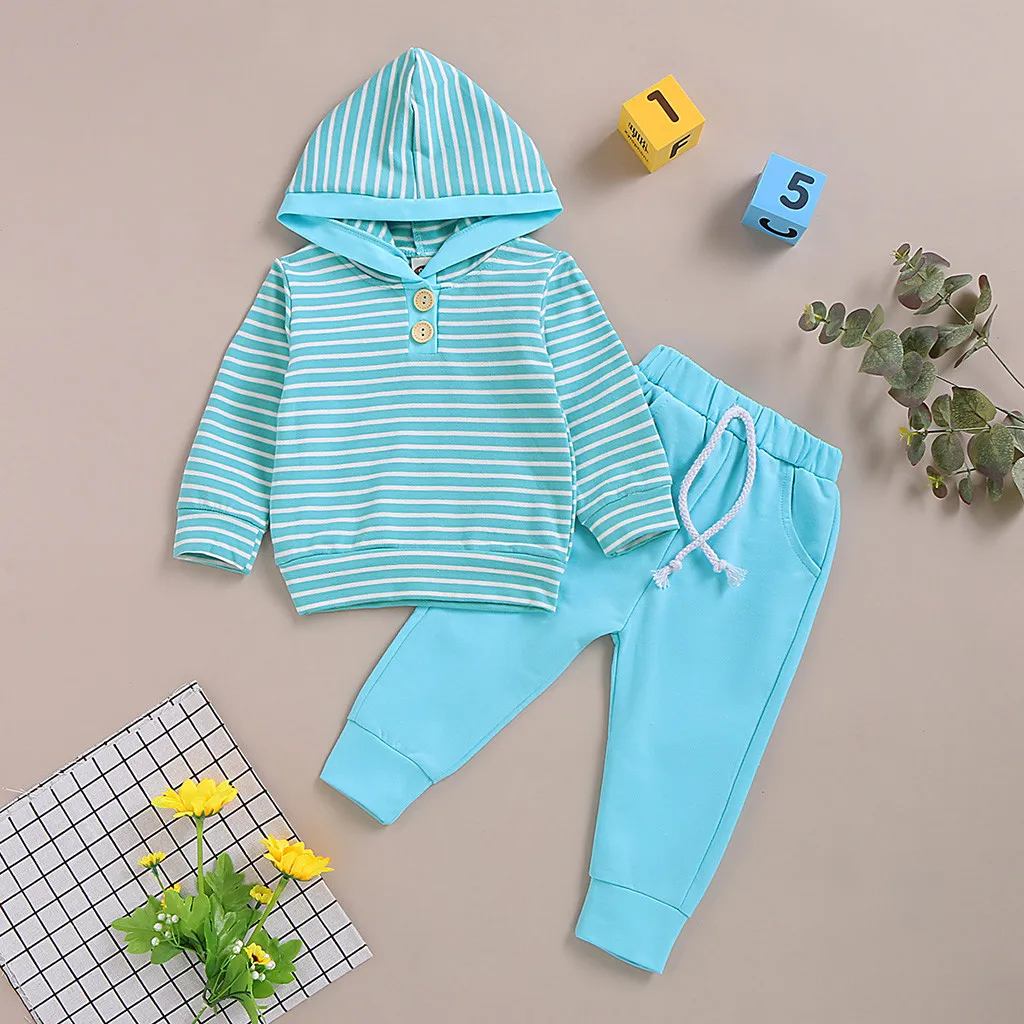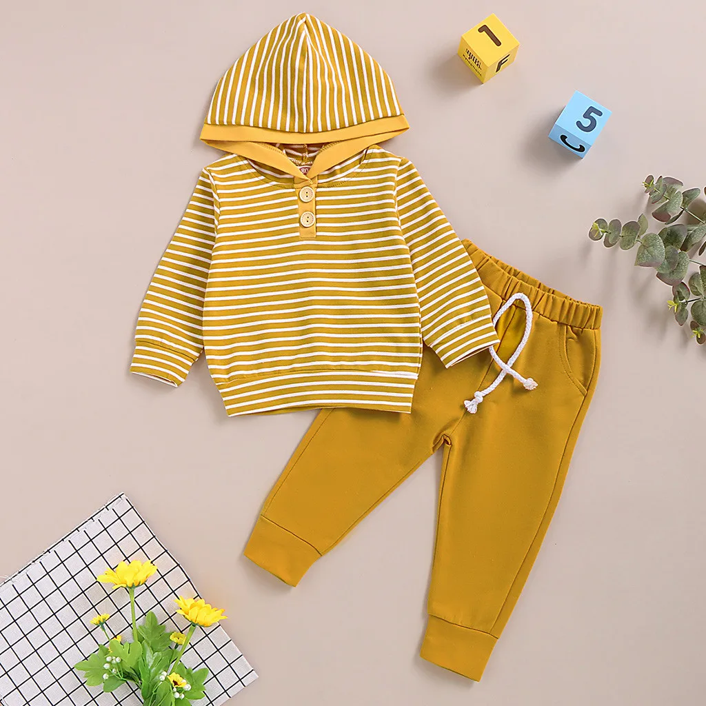 Детский полосатый свитер с капюшоном и принтом для маленьких мальчиков и девочек; комплект со штанами; детская одежда; боди для новорожденных
