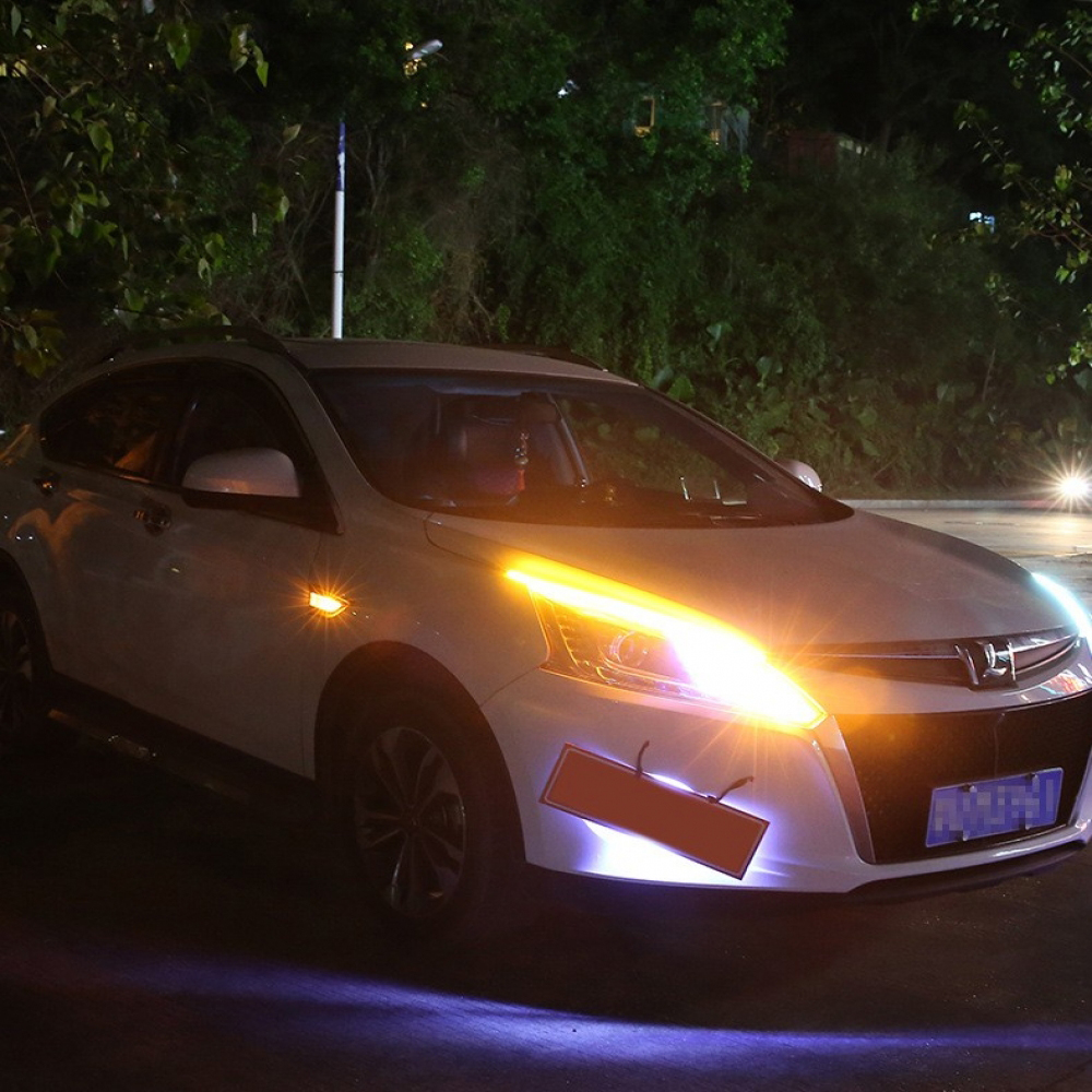 На нашем светодиодном изображении drl показан желтый светильник с сигналом поворота. Это основа для выбора двух цветов, таких как белый + желтый цвет (струящийся), красный + желтый цвет (струящийся), ледяной синий + желтый цвет (струящийся). Если вы выбираете один цвет, такой как только белый, только красный, только синий, только голубой, нет желтый сигнальный светильник поворота, это обычно дневной ходовой светильник. Не может быть плавного стиля! Это важно.