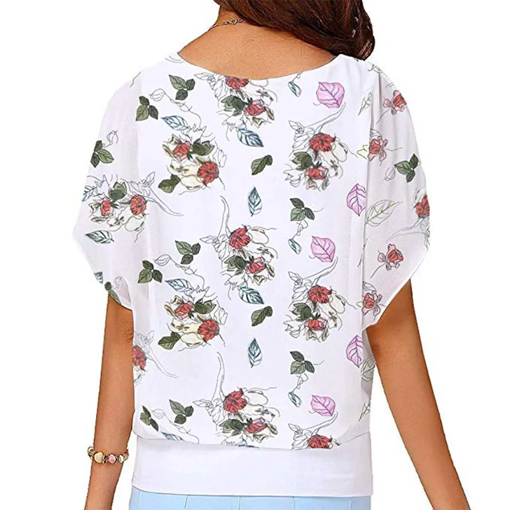 Женская модная свободная футболка большого размера с принтом и рукавами летучая мышь