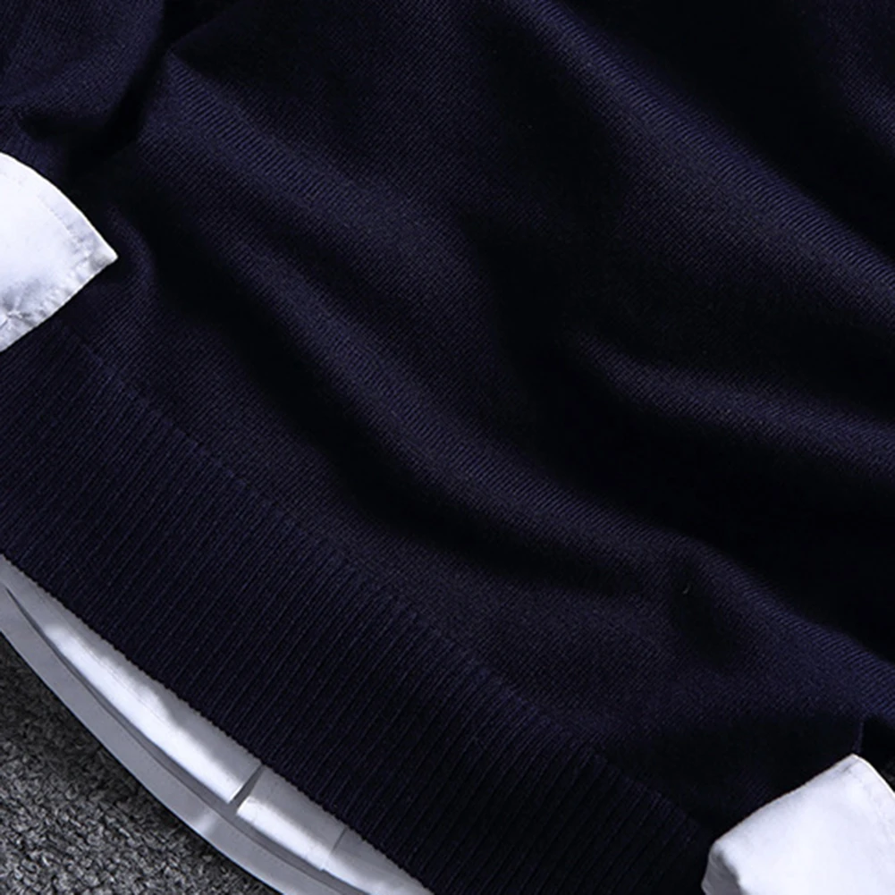 Модный мужской свитер в стиле пэчворк с круглым вырезом и длинным рукавом, вязаный свитер, верхняя блузка для теплой мужской одежды