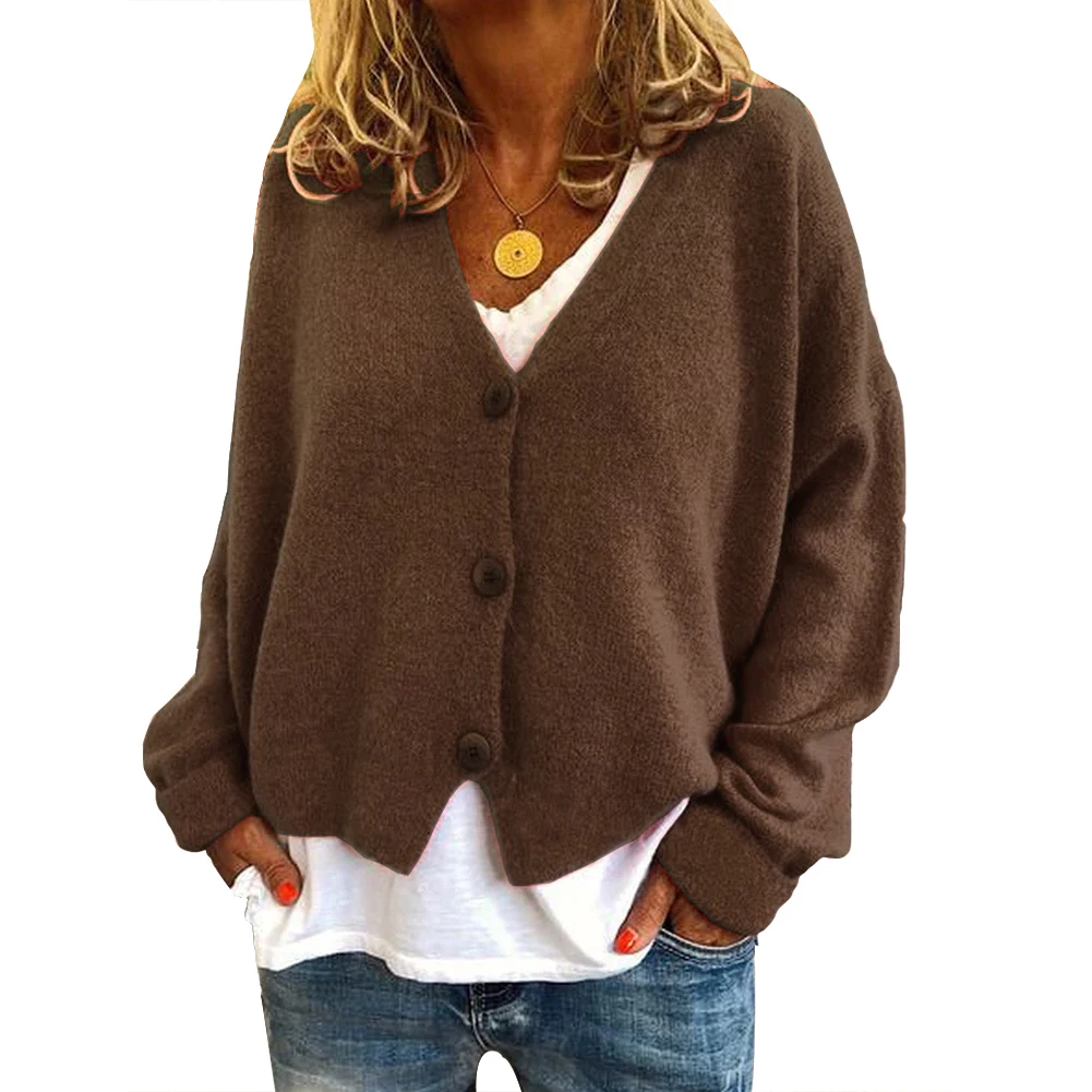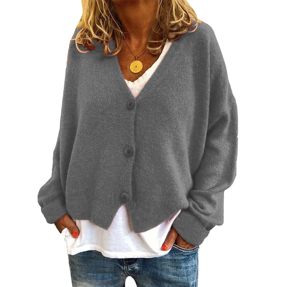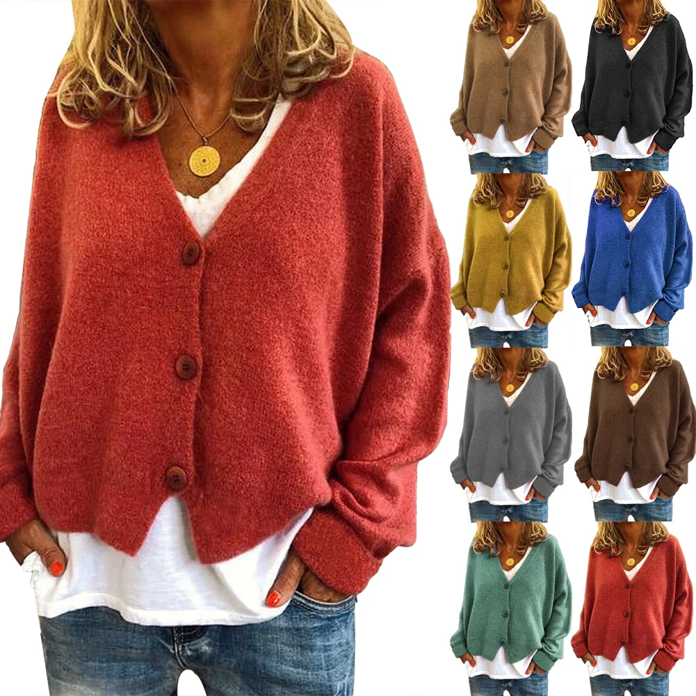 Повседневный Женский Осенний однобортный Кардиган с длинным рукавом, вязаный свободный свитер