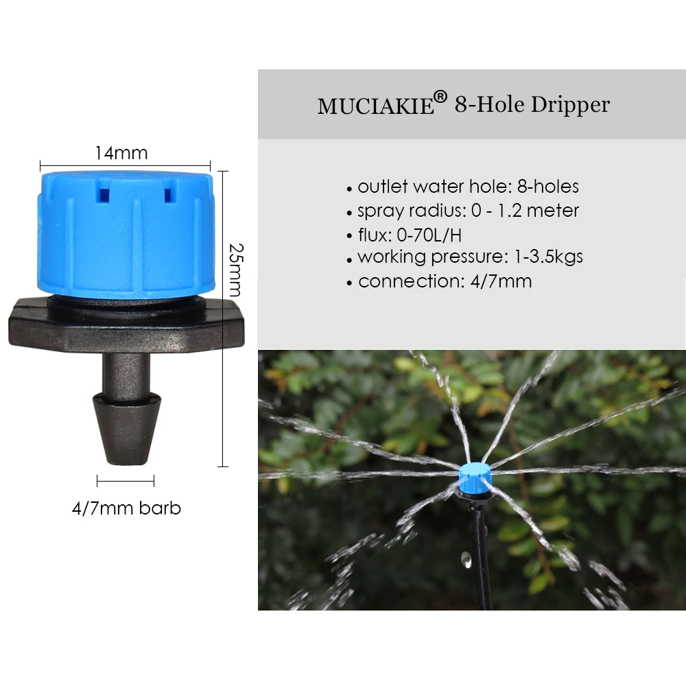 . Капельница для орошения регулируется на 360 градусов, 8 отверстий для распыления воды, может регулировать расход воды, может отрезать поток воды, большой поток воды и самопромывка помогают предотвратить закупорку.