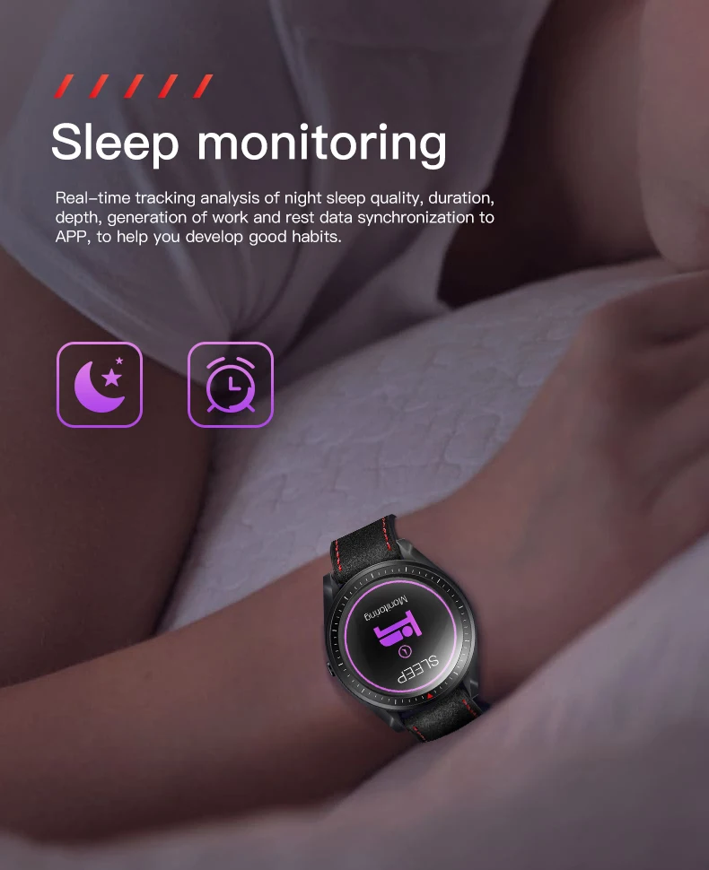 Отслеживание в реальном времени качества ночного сна, длительности, глубины, генерации работы и синхронизации данных отдыха в приложении, чтобы помочь вам развить хорошие привычки.