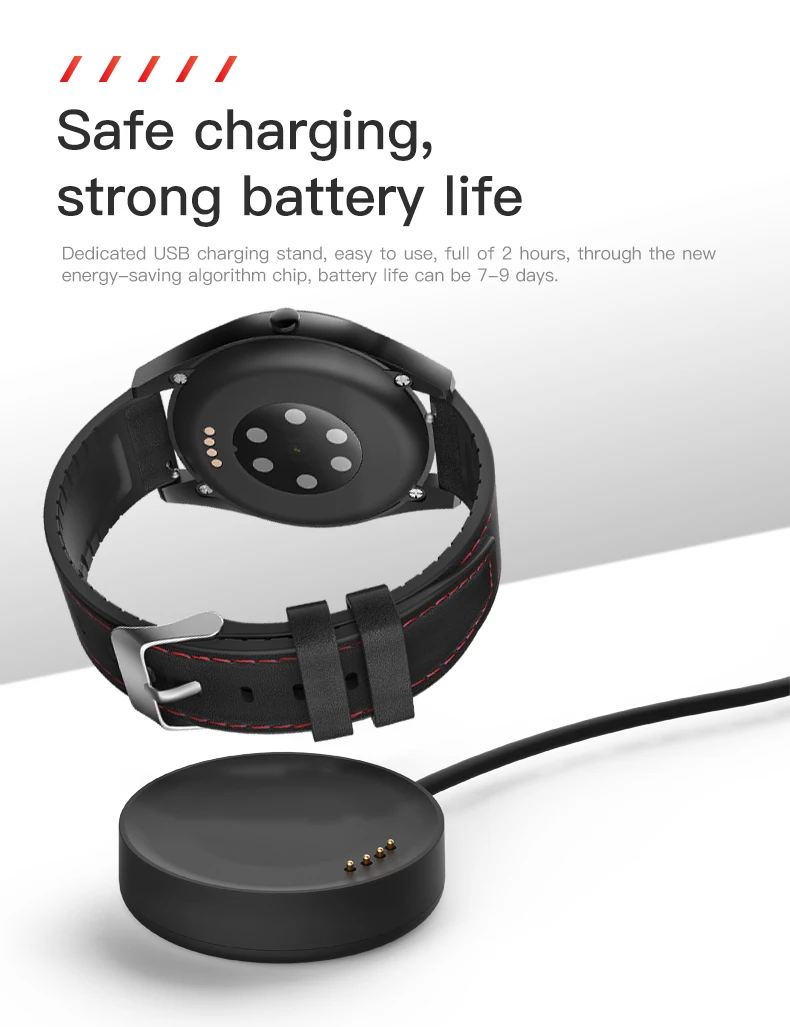 Специальная подставка для зарядки USB, простая в использовании, полная 2 часа, благодаря новому энергосберегающему чипу алгоритма, срок службы батареи может составлять 7-9 дней.
