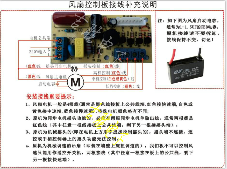 Эта плата является универсальной, а вентилятор вентилятора может быть преобразован в вентилятор с дистанционным управлением, даже если это вентилятор без пульта дистанционного управления. Модификация проста, например, механический вентилятор, который имеет 4 провода и черные провода, соединенные с общим концом. Три линии могут управляться путем подключения высоких, средних и низких соответственно, и модификация относительно проста.