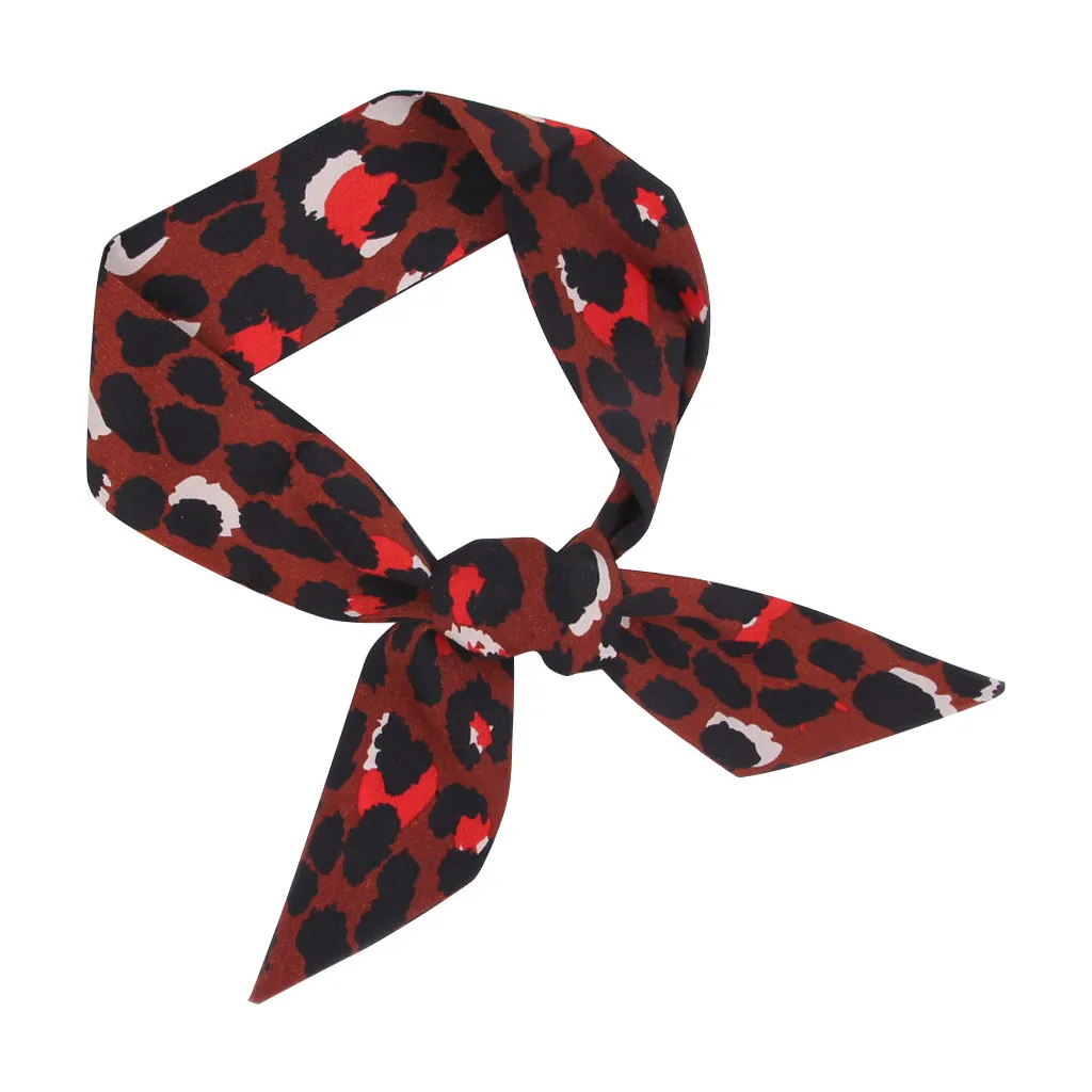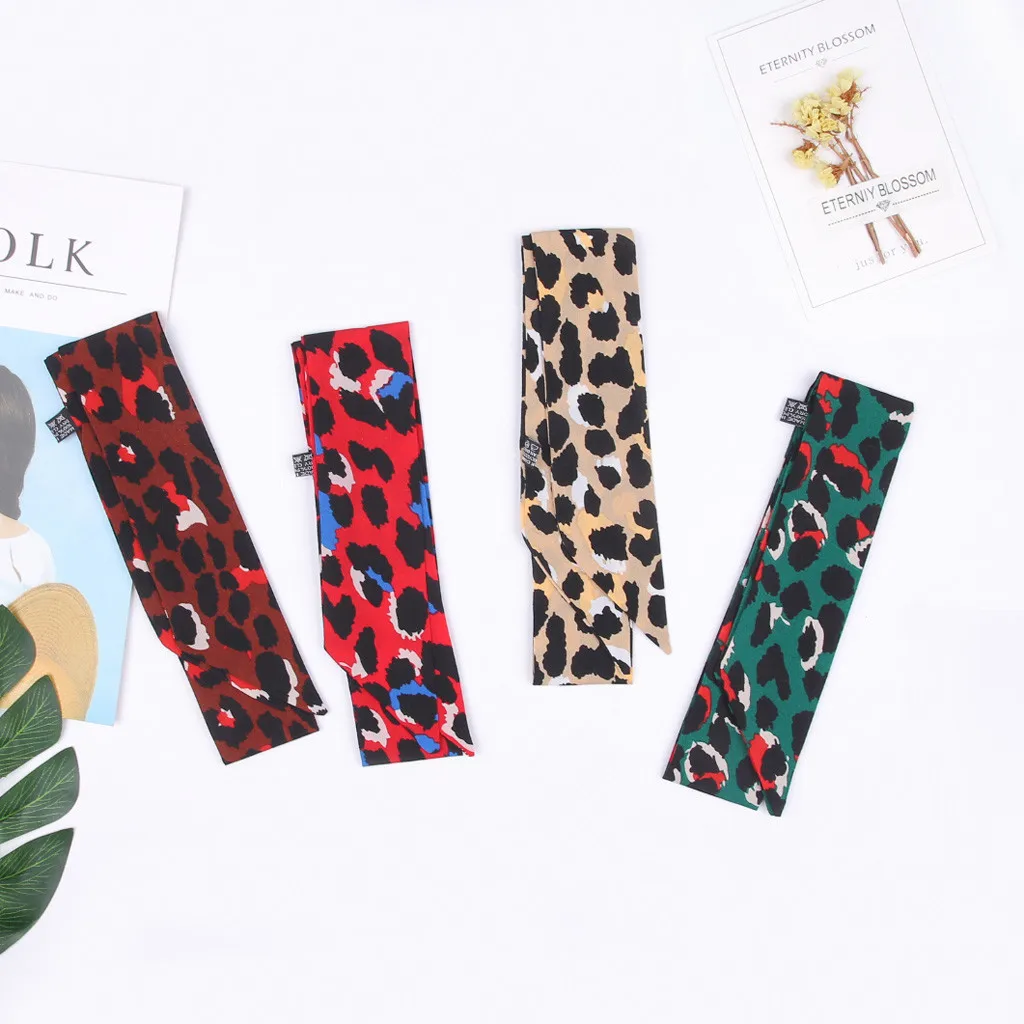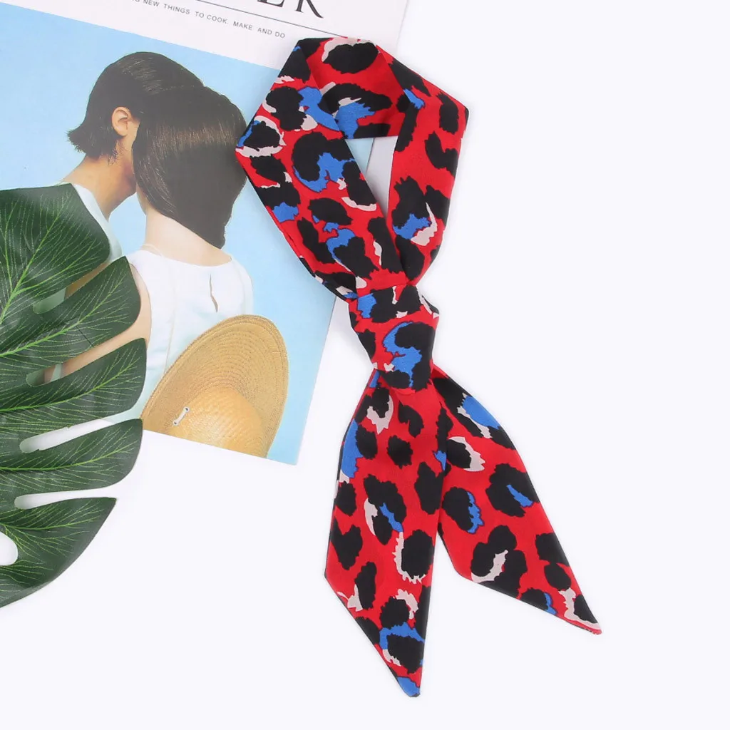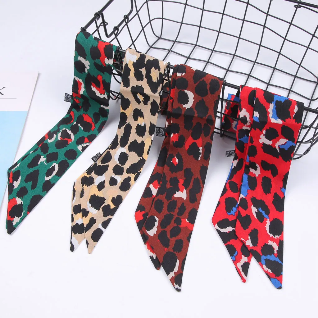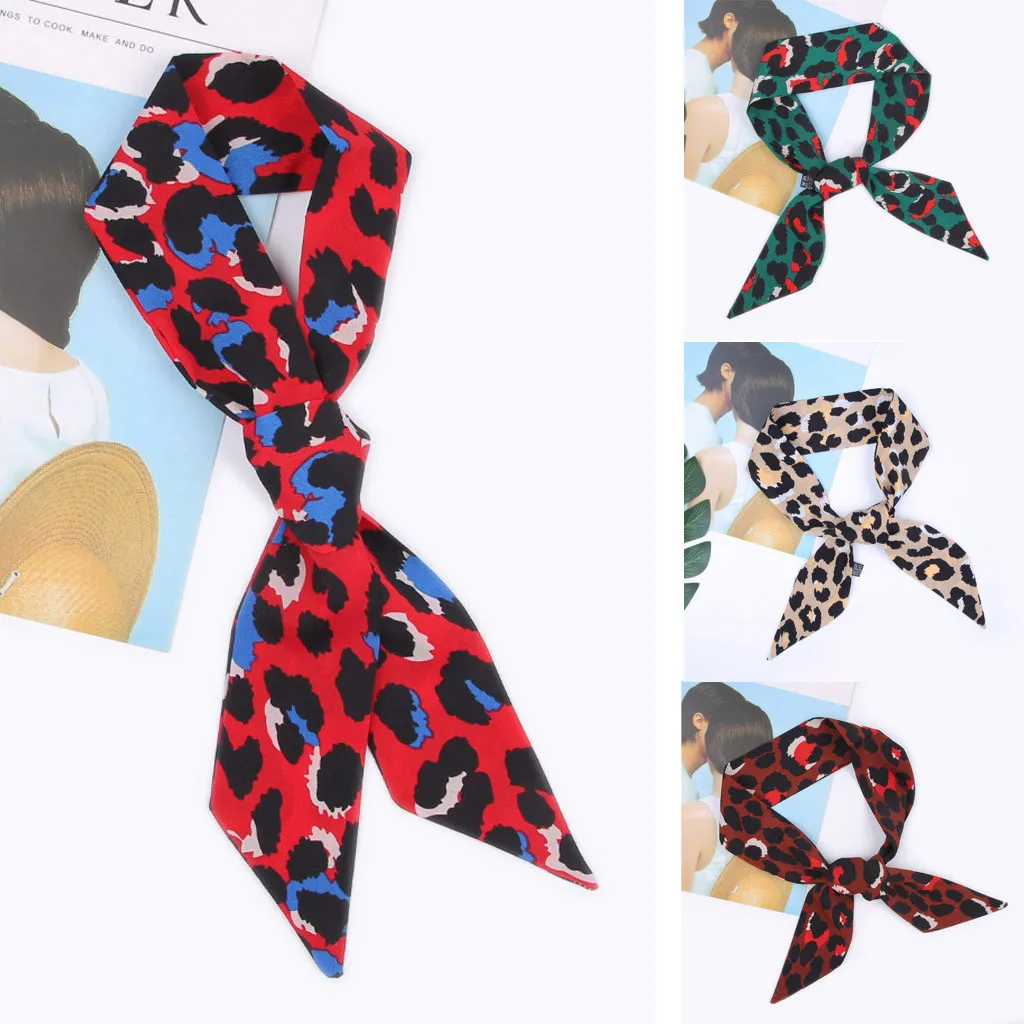 VWomen галстук-платок Леопардовый принт мягкий шелковый шарф лента повязка на голову сумка аксессуары