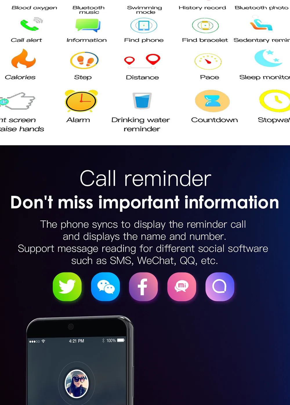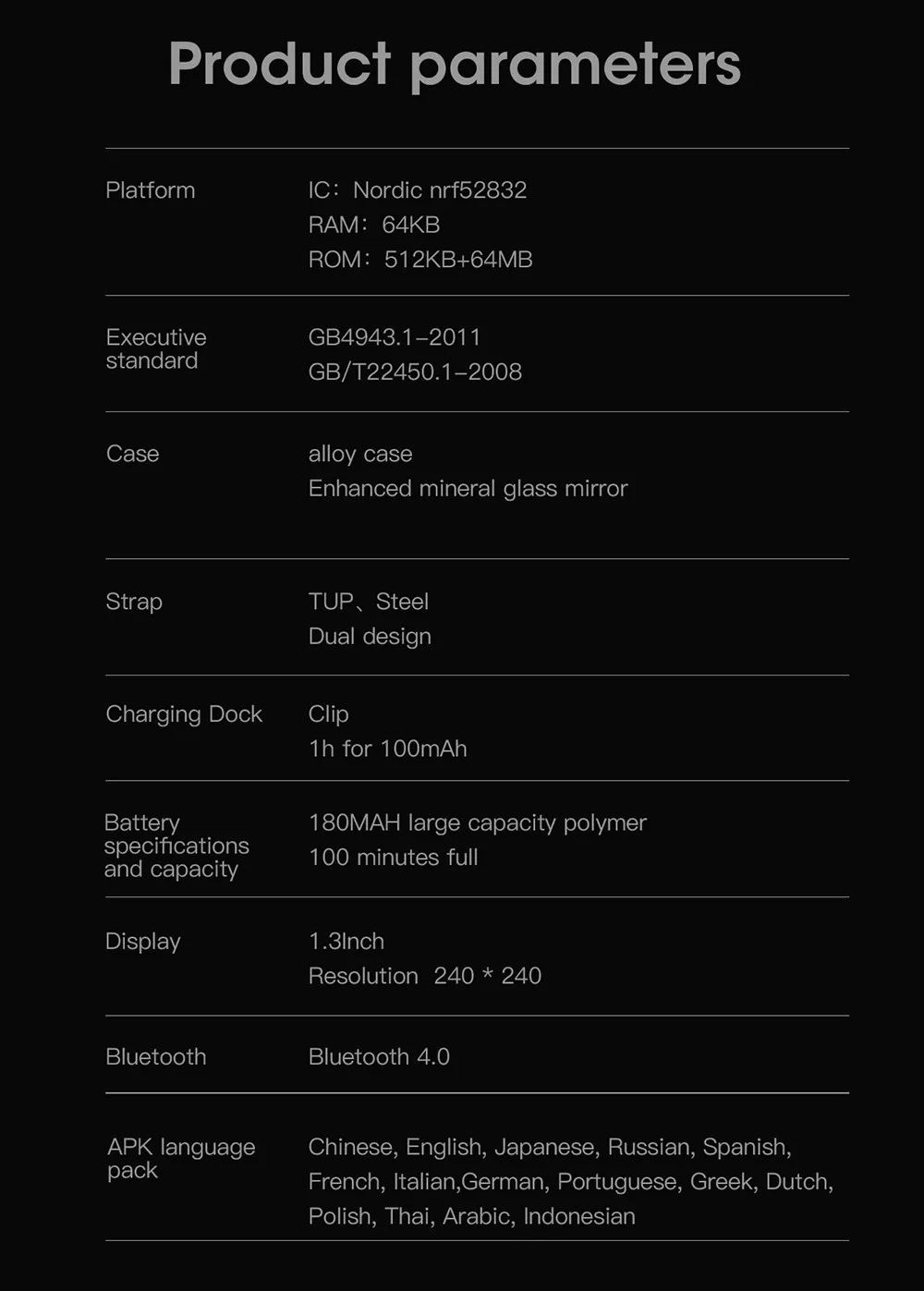 Основные пункты продажи продукта: ультратонкий, IP68 водонепроницаемый, ЭКГ Пульсоксиметр шаг. Платформа: Norway North nrf52832 Оперативная память: 64 Кб, ROM: 512кб + внешний 64 Мб Исполнительный стандарт: GB4943.1-2011; ГБ/T22450.1-2008 Справочный Размер всей машины: "43,9*43,9*10,9 мм, Длина ремешка 240 мм " Вес машины: силиконовый ремень 50 г Чехол: чехол из сплава, зеркало из армированного минерального стекла Ремешок: двухцветный дизайн Пищевой Экологически чистый силиконовый материал ремешок/сетчатый ремень из нержавеющей стали, стандарт шириной 20 мм Подставка для зарядки: зажим для зарядки Экологически чистые продукты: CE имеет квалификацию Цвет: двухцветный силикон со спортивным красным, флуоресцентный зеленый, стильное серебро, сетка с черным/сетка с серебром Главный экран: 1,3 дюймов TFT квадратный разрешение экрана 240*240 Сенсорный экран: мультитач Bluetooth push: вызов, SMS, WeChat, QQ отображение содержимого сообщения Синхронизация Обнаружение сердечного ритма: Поддержка непрерывного сердечного ритма, измеряется каждые 10 минут Шагомер: спортивный шаг, потребление калорий, запись пробега упражнений Мониторинг сна: открывается автоматически с 9:00 каждую ночь до 9:00 на следующее утро. Напоминание о звонке: Поддержка отклонения вызова Функция Bluetooth и версия: Bluetooth 4,0 Размер и Емкость аккумулятора: литий-полимерная батарея 175 мАч Вибрационный Мотор: Поддержка Язык синхронизации информации: китайский, английский, японский, русский, испанский, французский, итальянский, немецкий, португальский, греческий, голландский, польский, тайский, арабский Языковая упаковка APK: китайский, традиционный китайский, английский, русский, испанский, французский, японский, итальянский, немецкий, португальский, русский, турецкий, иврит, чешский, польский, арабский, тайский, индонезийский, армянский, Основная функция: ЭКГ, обнаружение сердечного ритма: Поддержка непрерывного сердечного ритма, измеряется каждые 10 минут Кровяное давление, кислород в крови Другие особенности: мульти-спортивный режим, Bluetooth управление музыкой, Bluetooth фотографии, история, найти телефон, калории, ритм, напоминание о сидячем положении, поворот на запястье, напоминание о напитке, будильник, обратный отсчет, секундомерЗаказала эту рубашку! Классное качество. Все пришло в идеальном состоянии! Сейчас с удовольствием ношу. Размер идеально подошёл. Ткань после стирки... Читать отзыв полностью...
