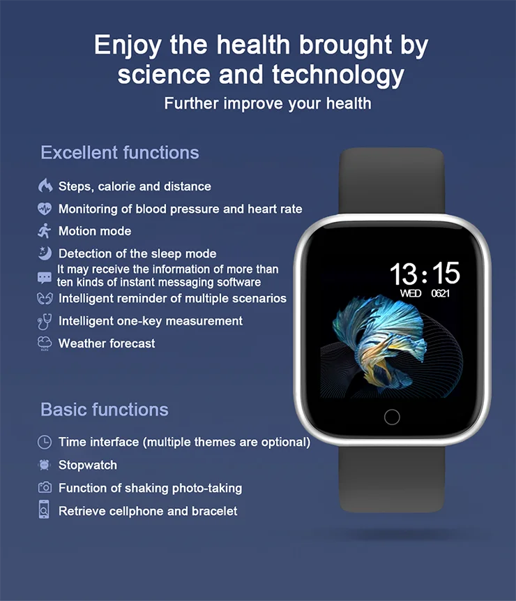 Другие функции: Включите экран запястья, отображение времени, удаленную камеру, не беспокоить настройки режима, найти браслет, WeChat спорт, пользовательский домашний стиль.