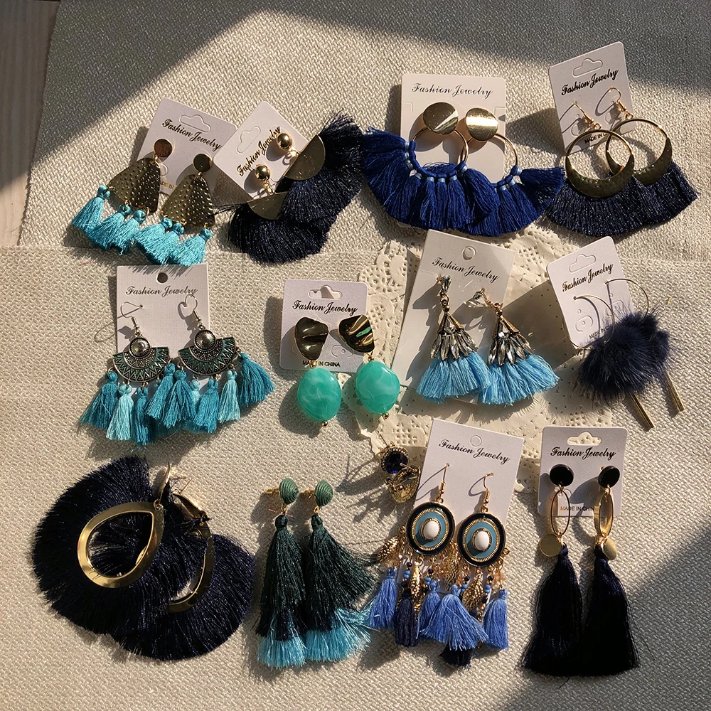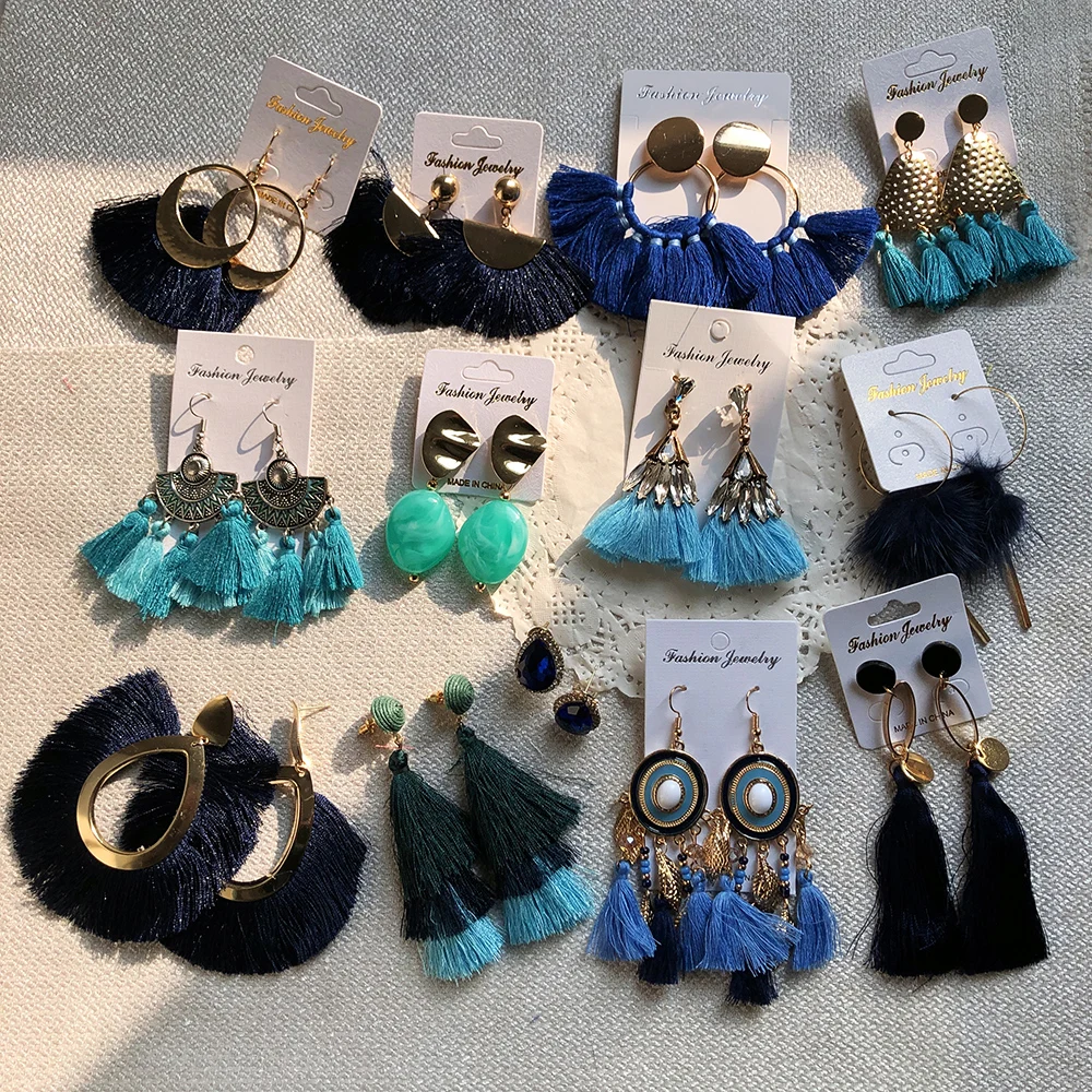 This is the blue colors earrings light blue dark blue a lot different design you can just add the style you like in your cart and then buy it.