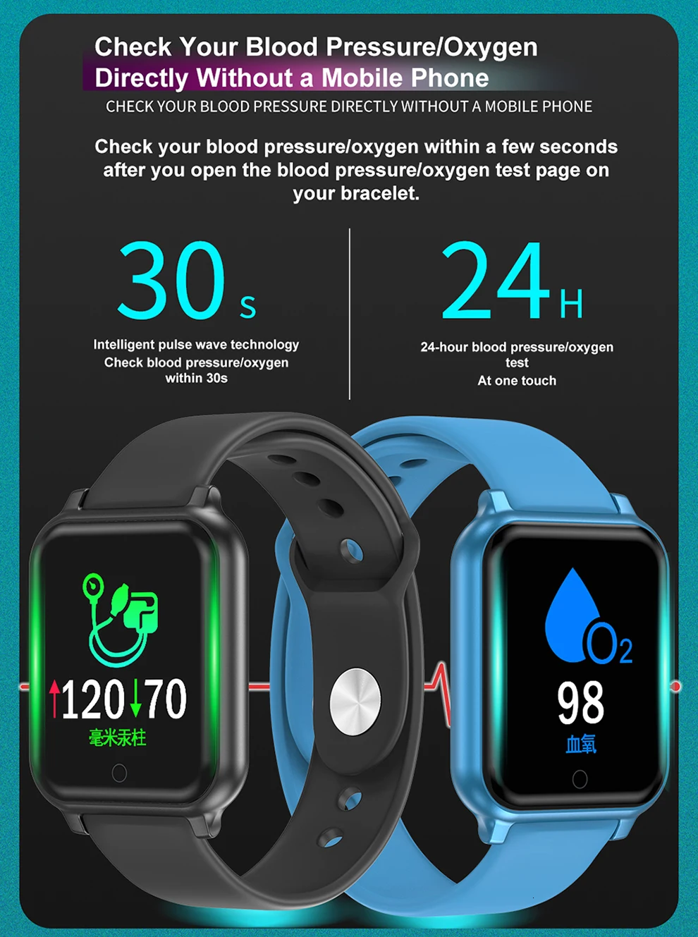 Мониторинг здоровья: измерение сердечного ритма в реальном времени (динамическое, статическое), измерение кровяного давления (можно установить измерение кровяного давления), измерение уровня кислорода в крови, контроль усталости.
