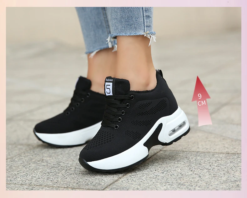 Chaussures Haute Marche Femme, женская обувь, увеличивающая рост 9 см, спортивные зимние кроссовки на толстой платформе, женские кроссовки для бега 1. 100% абсолютно новый 2. Цвет: черно-белая женская повседневная обувь 3. Размер: CN Размер 34-39, пожалуйста, учитывайте погрешность 0-2 см из-за ручного измерения 4. Упаковка: новая Брендовая обувь без box5.пожалуйста, выберите размер в соответствии с длиной стопы