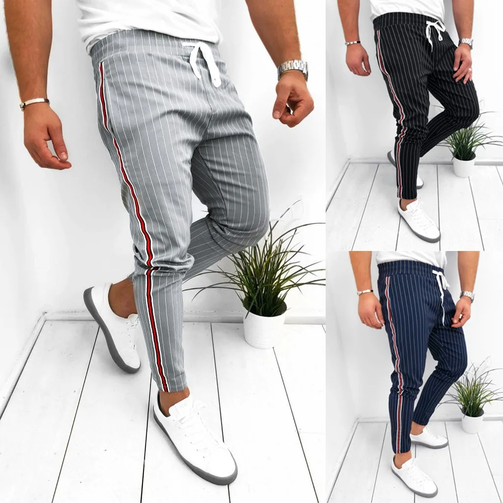 Мужские брюки для бега, полосатые Лоскутные повседневные штаны с завязками, длинные брюки