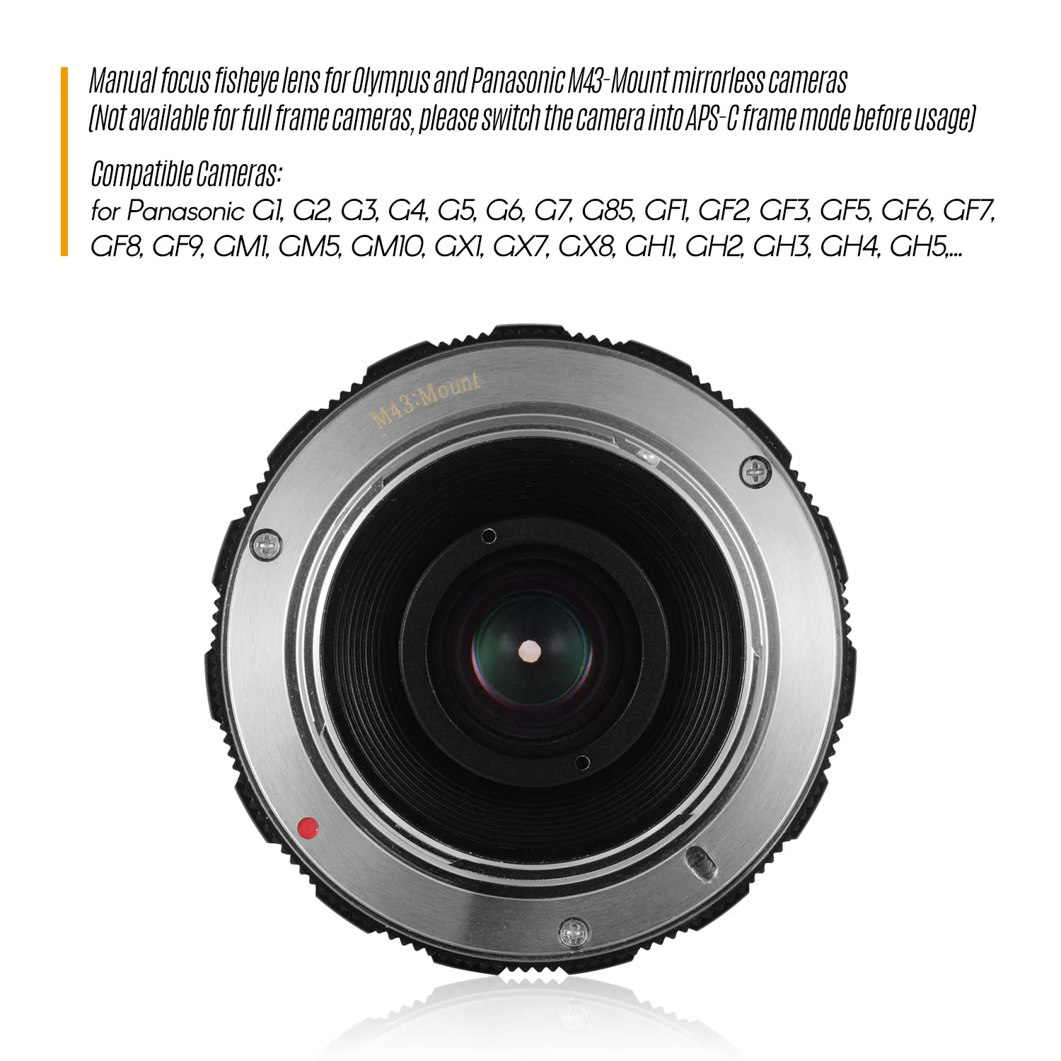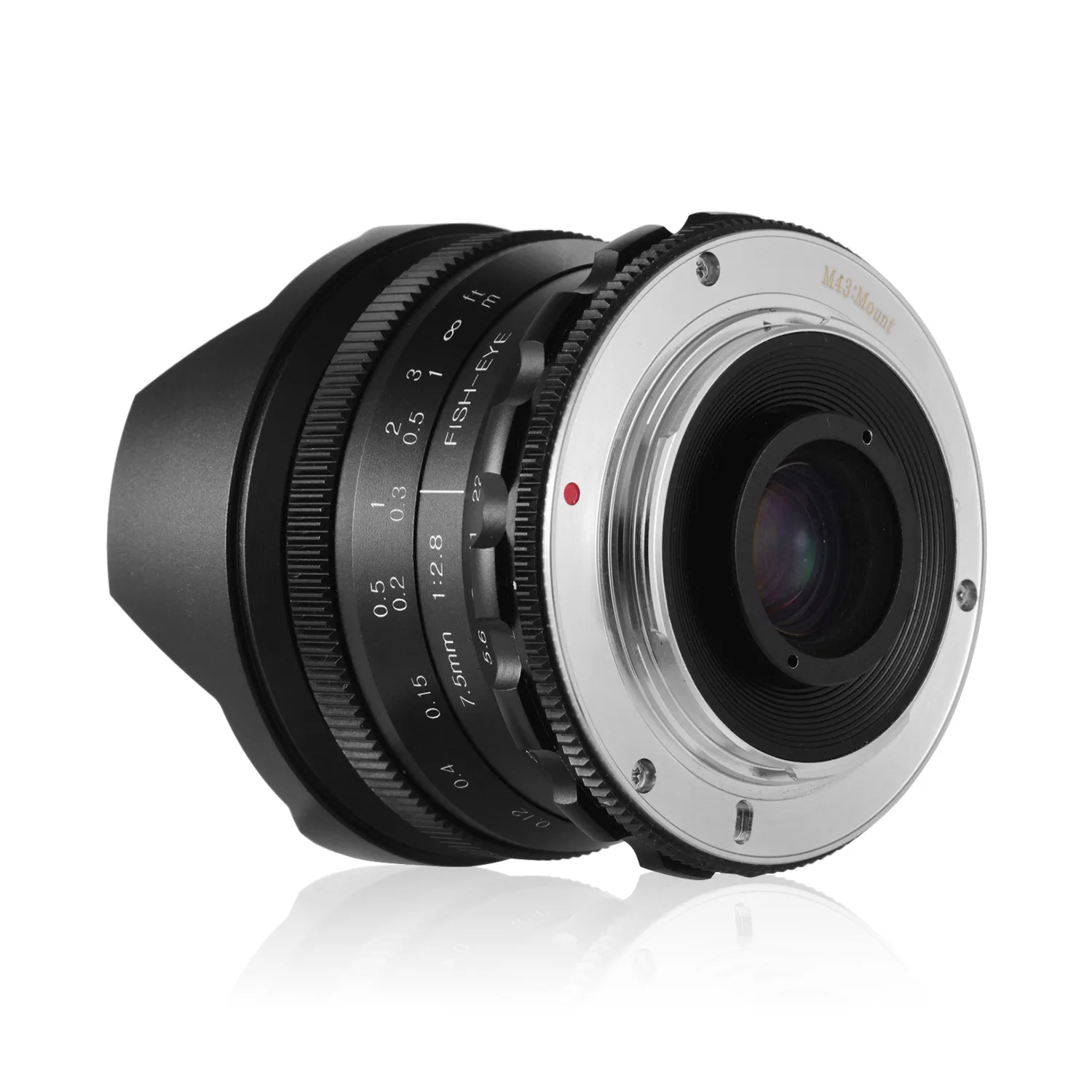 7,5 мм фокусное расстояние и 180 ° ультра широкий угол поля, подходит для съемки пейзажей, видеокамера для панорамной съемки, путешествия, подводной съемки и т. д.