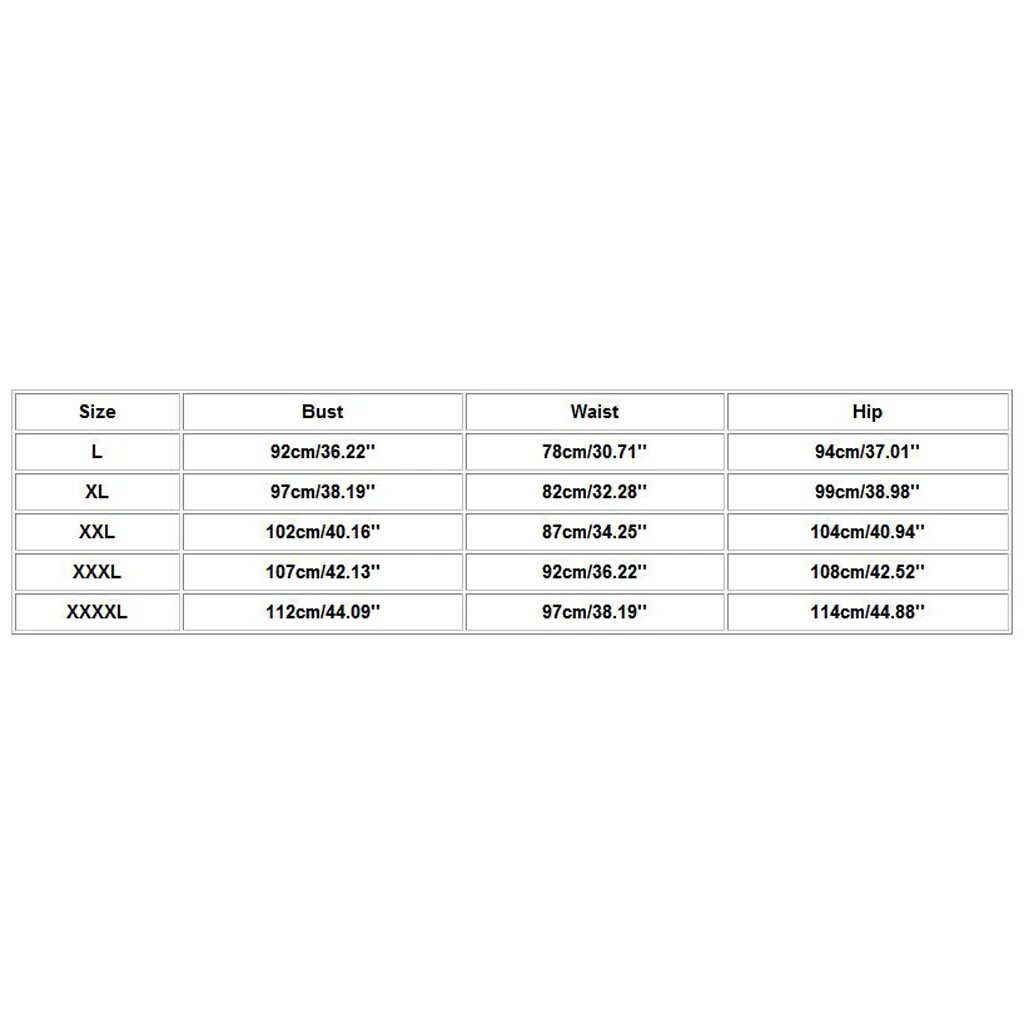 Размер Бюст Талия Бедра L 92 см/36,22'' 78 см/30,71'' 94 см/37,01'' XL 97 см/38,19'' 82 см/32,28'' 99 см/38,98'' XXL 102 см/40,16'' 87 см/34,25'' 104 см/40,94'' XХХL 107 см/42,13'' 92 см/36,22'' 108 см/42,52'' XXXXL 112 см/44,09'' 97 см/38,19'' 114 см/44,88''