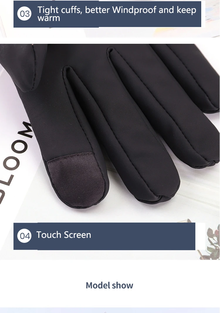 1. Номер модели SUN-GLV13 2. Материал 1: Одинарная замша 3. Материал 2: теплый флис 4. Тип: полный палец 5. Тип изделия: перчатки и варежки 6. Тип спорта: катание на лыжах, снег, езда на велосипеде, мотоцикл 7. Стиль: зимние перчатки, теплые перчатки 8. Цвет: черный, светильник-серый, темно-синий, коричневый 10. Пол: мужчин и женщин 11. Особенности: Водонепроницаемость, защита от ветра, сохраняет тепло (-30 °C) 12. Велосипедные перчатки: велосипедные перчатки 13. Перчатки: мужские перчатки, женские перчатки 14. Лыжные перчатки: мотоциклетные перчатки, походные перчатки, теплые перчатки, зимние перчатки