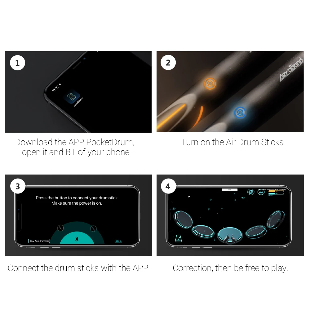 AeroBand DL-1903A PocketDrum-это супер крутой эмульсионный инструмент. Барабанные палочки с поддержкой BT подключаются к приложению AeroBand и позволяют добавить ритм в вашу жизнь, куда бы вы ни отправились. Изучите основы ритма, варенья свободно или Играйте вместе с приложением, все без нагрузки на полный набор барабанов.