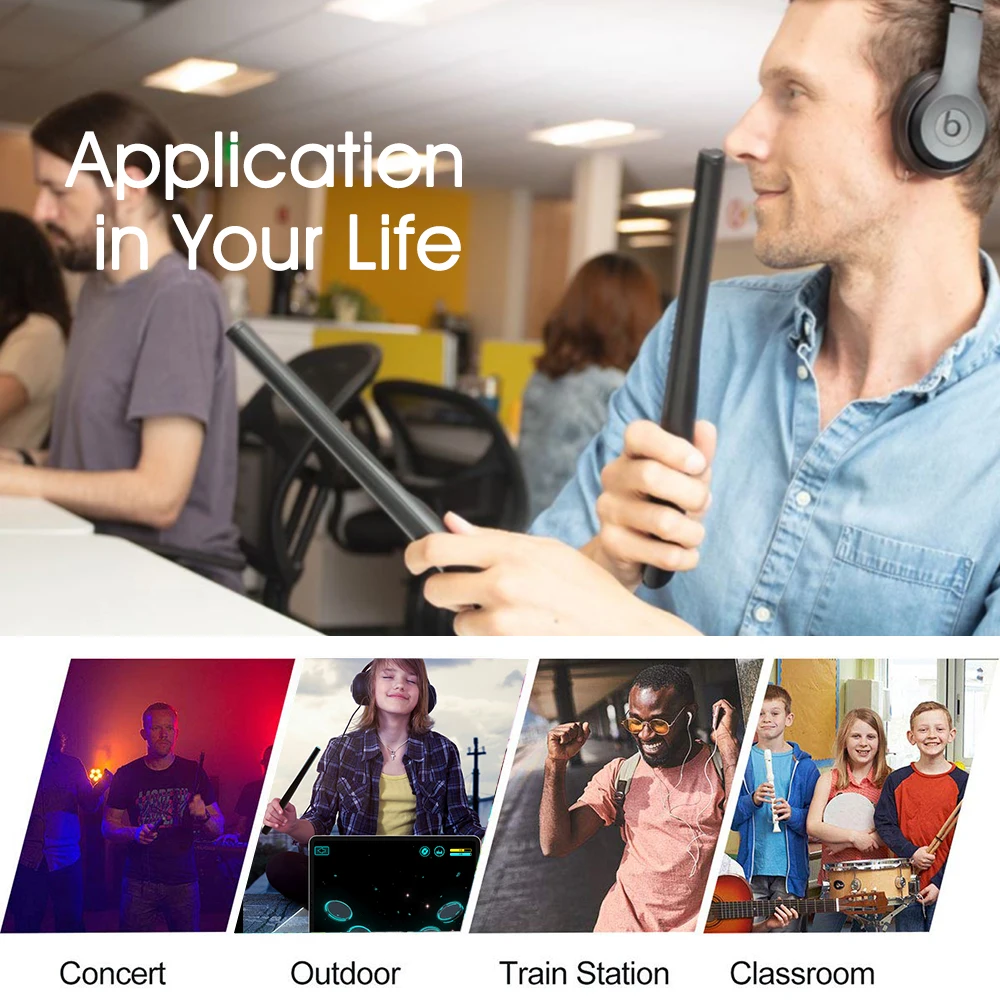 Легкий и портативный:Карманный размер, разработанный аэробор, набор электронных ударных, легкий (100 г на палку) и Перезаряжаемый, в комплекте с тканевым мешком, который позволяет нам играть или учиться без ограничения места, такие как дом/офис/класс/железнодорожная станция, на обочине дороги или на дороге.