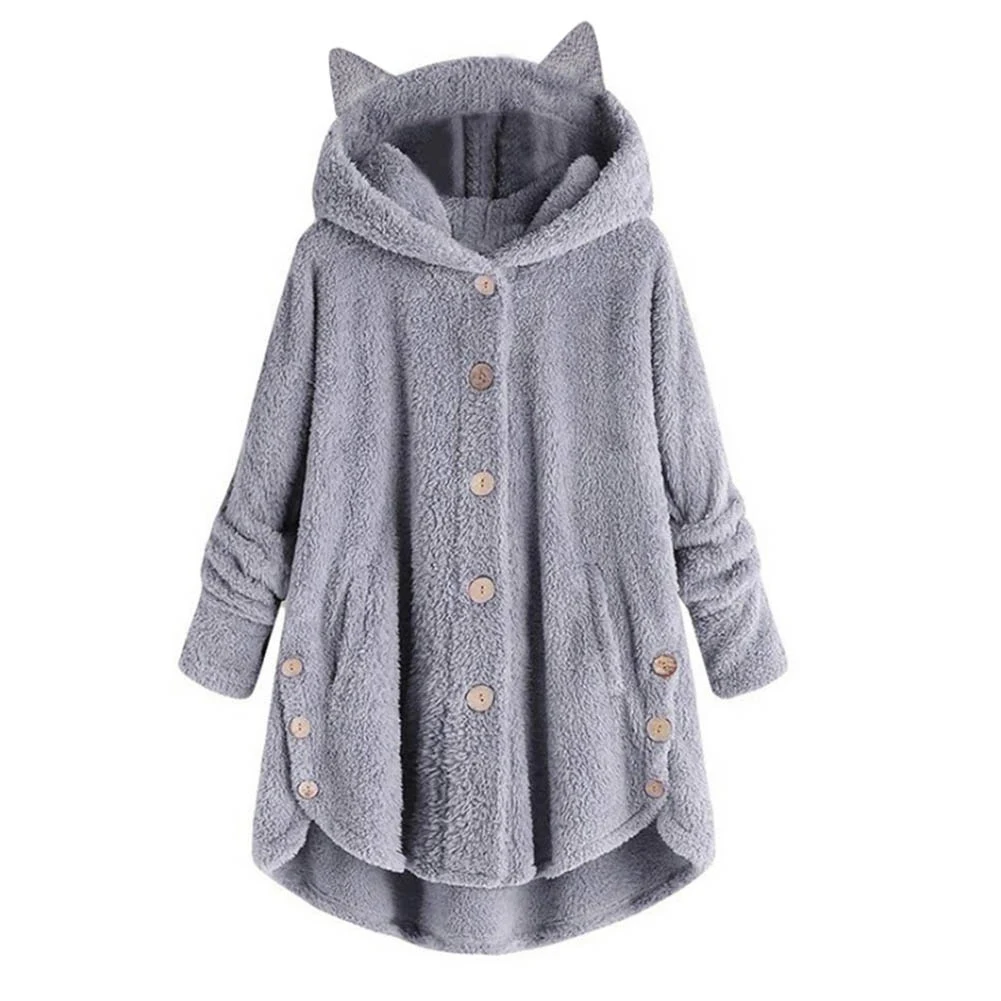 Милая женская зимняя куртка на пуговицах с капюшоном и ушками кошек; Флисовое пальто