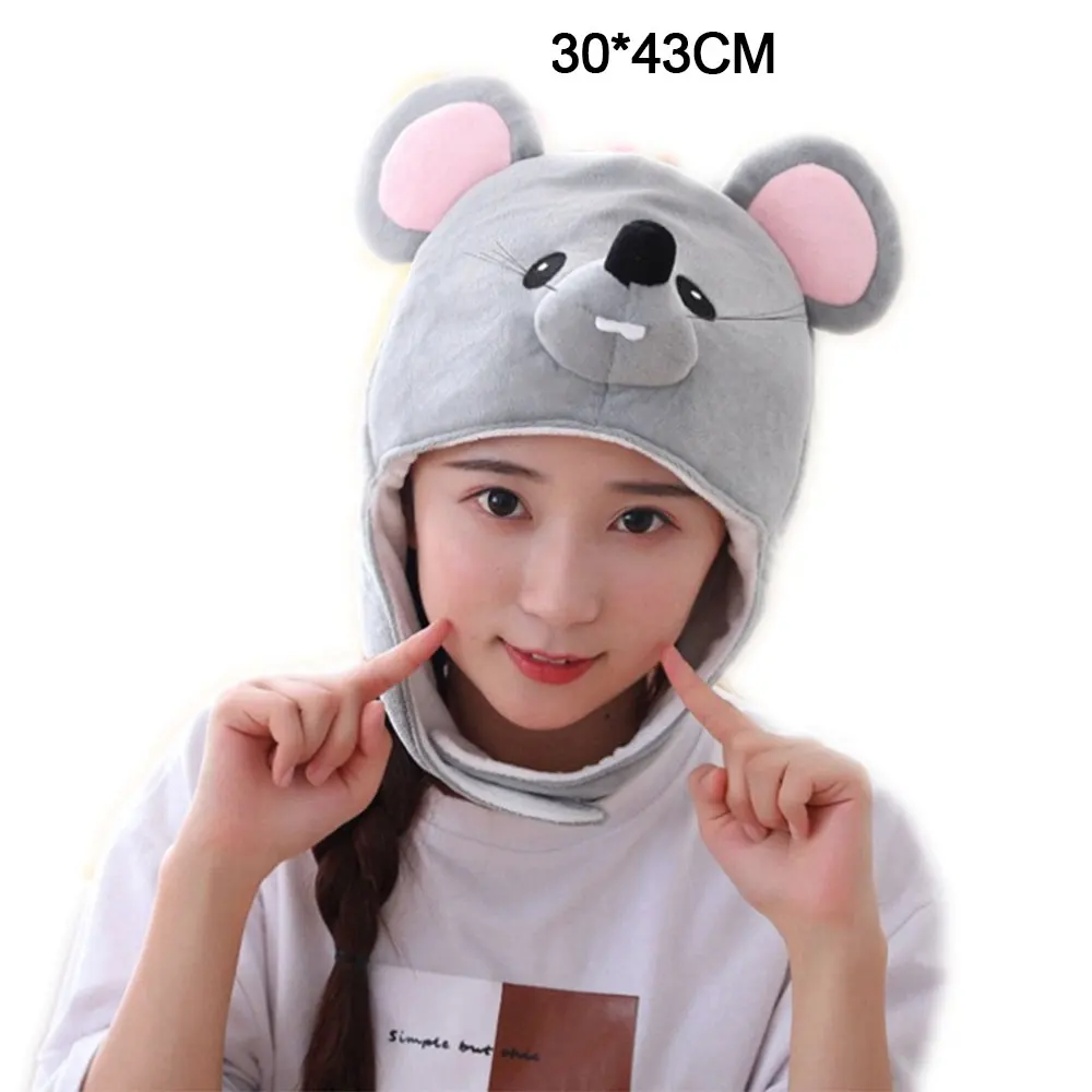 Плюшевая шапка с животным, мягкая, теплая, зимняя, головной убор, забавная, милая, шапочка, Мультяшные животные, форма, полиэстер, флисовая подкладка, шапка для детей