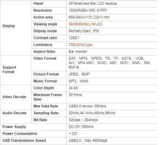 28 дюймов растягивается бар ЖК-дисплей Панель DV280FBM-NB1B2 с 1920*360 ,700 кд/м², ЖК-дисплей рекламы Экран, полка для супермаркета Экран Поддержка HDMI