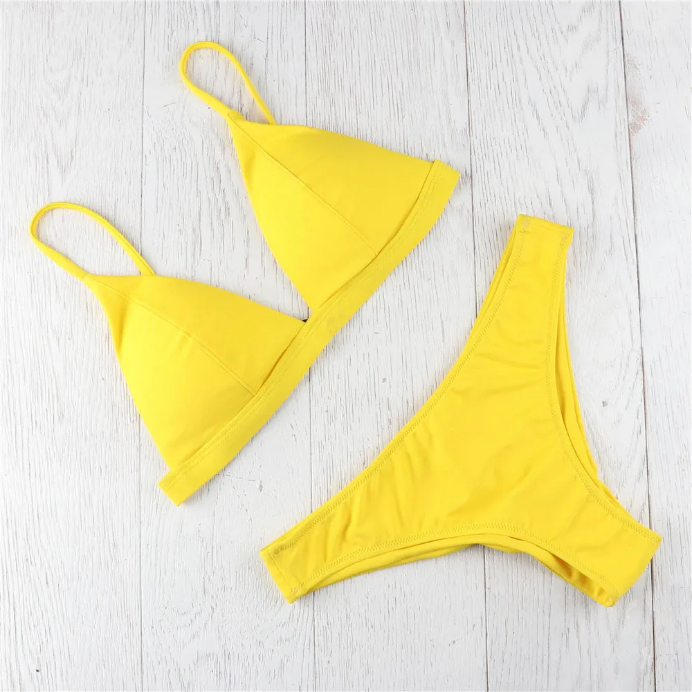 Женский комплект бикини из двух предметов, Одноцветный купальный костюм пуш-ап, купальный костюм