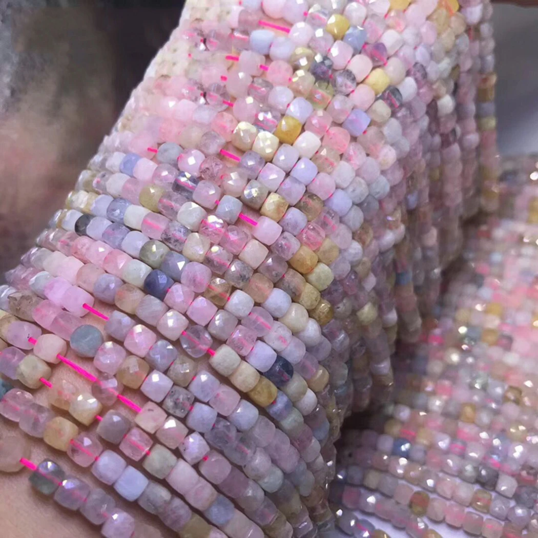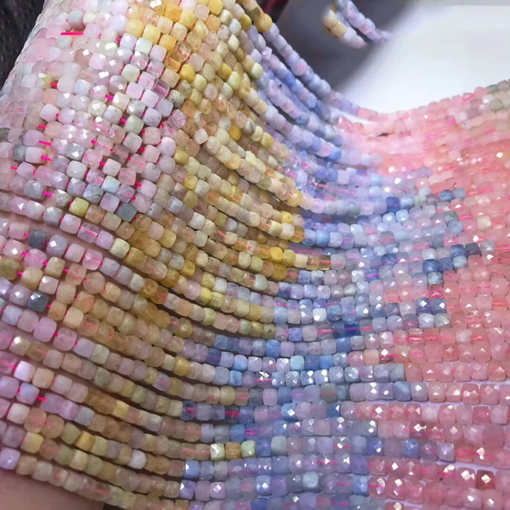 ICNWAY натуральный морганит 4-4,5 мм Гранёные с одной и плоские с другой стороны куб неоправленные полудрагоценные камни для 925 стерлингового серебра ювелирные изделия делая ожерелье браслет 15 дюймов