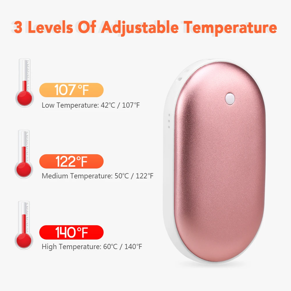 2-в-1 грелка для рук и Мощность Дополнительный внешний аккумулятор с 5200 мА/ч, многоразовых перезаряжающихся батарей, обеспечивает обеспечивают тепло, комфорт и удобство, который представляет собой лучшие подарки для друзей и семьи в холодную зиму.