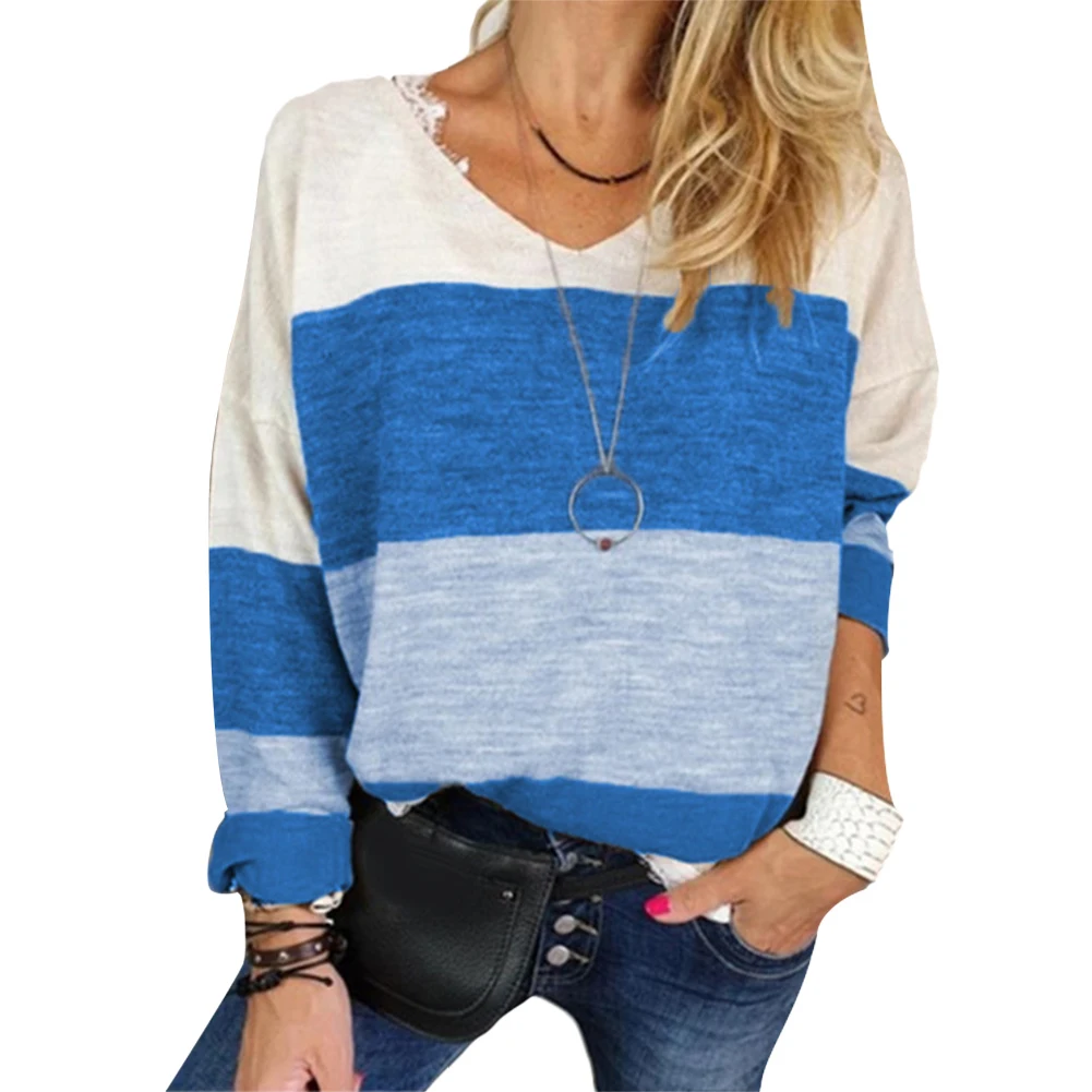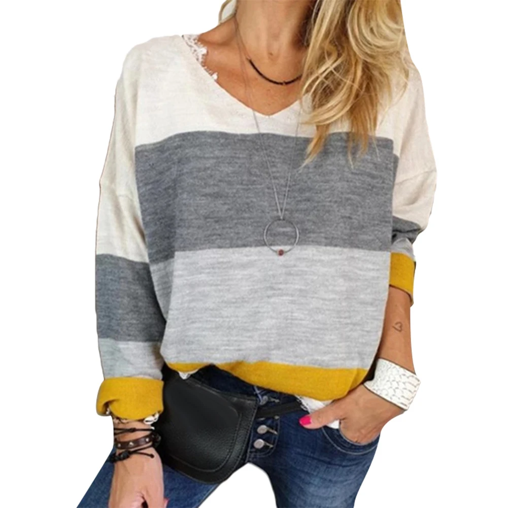 Женская Повседневная Осенняя Свободная блузка с длинным рукавом и v-образным вырезом размера плюс