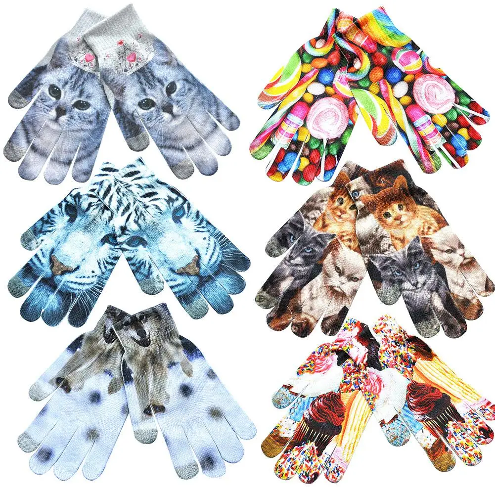 1 пара зимних теплых цветных трикотажных перчаток унисекс с сенсорным экраном