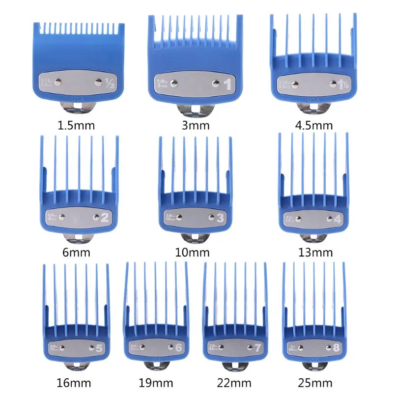 Особенности: направляющая расческа, цветная, резка, несколько размеров, машинка для стрижки волос, режущий инструмент, парикмахерский набор