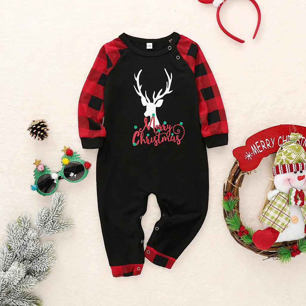 Newborn Baby Infant Christmas Pajamas Deer Plaid Family Matching Romper Jumpsuit