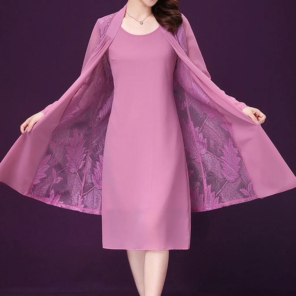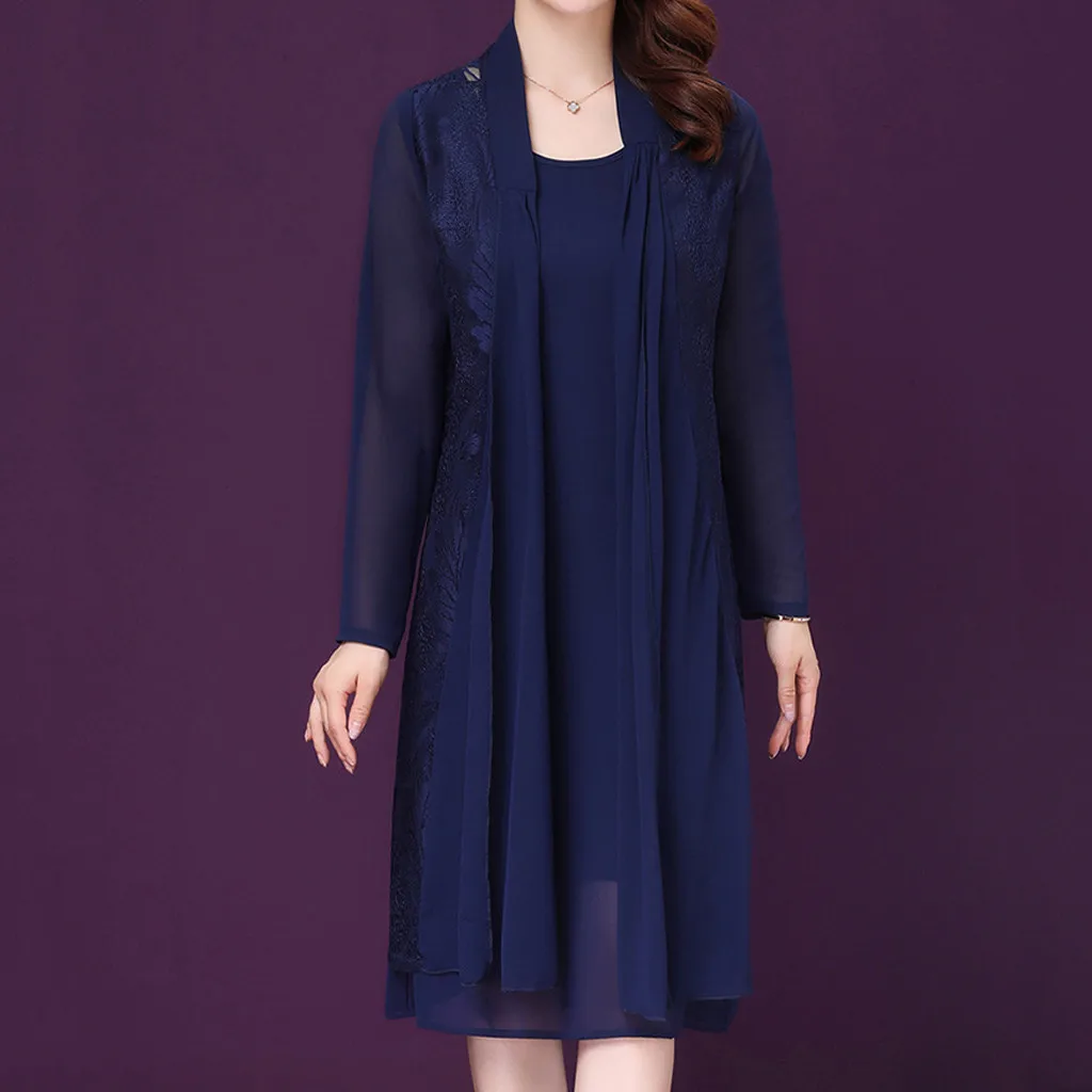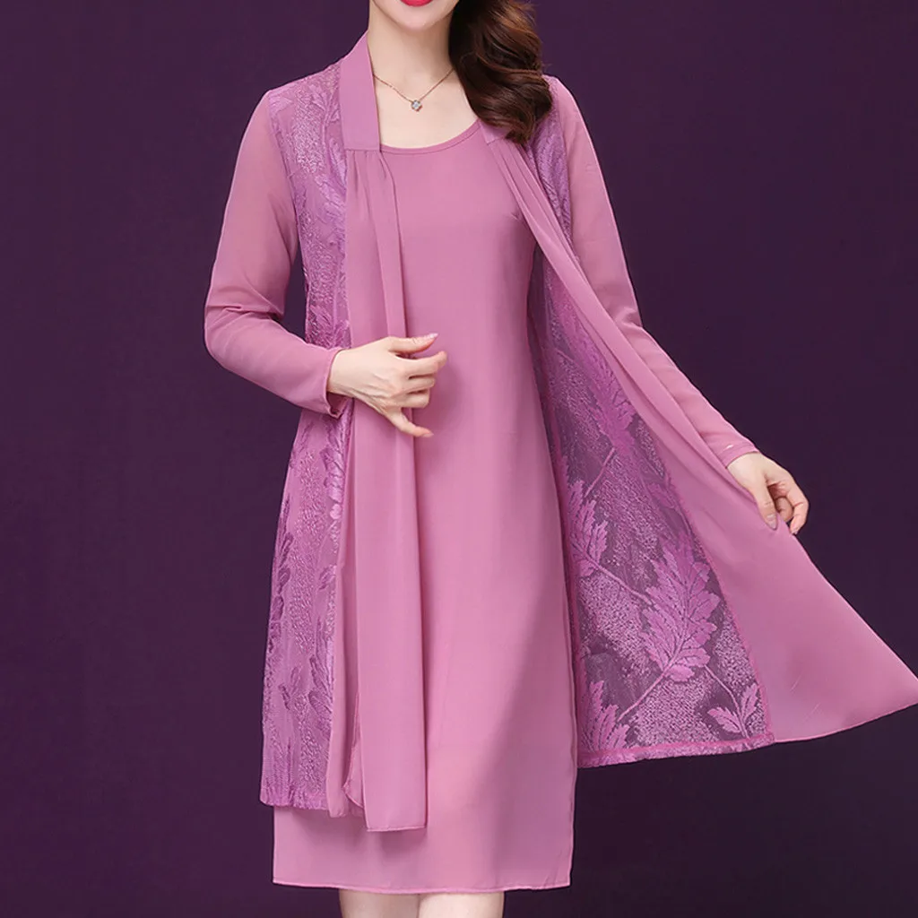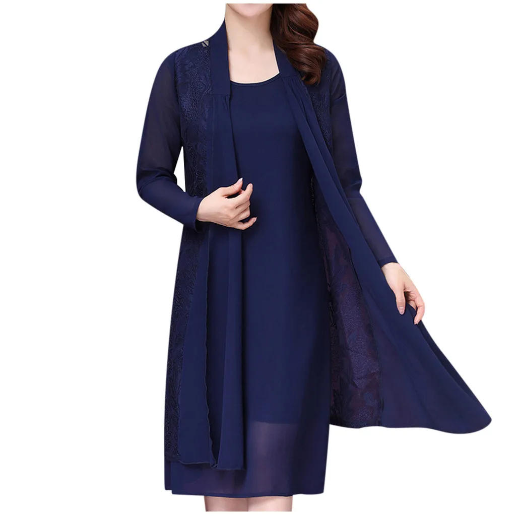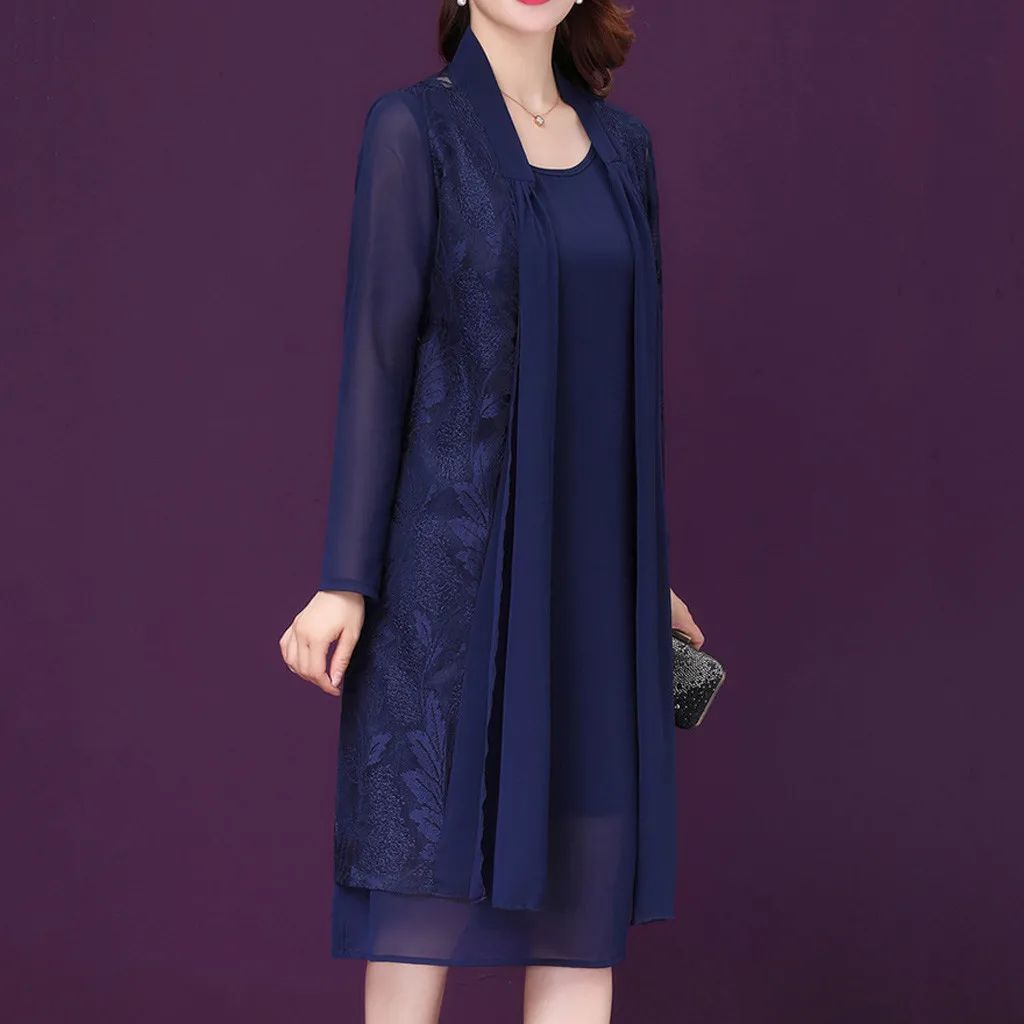 2 шт., вечерние платья среднего возраста, вечерние шифоновые платья с кружевным кардиганом
