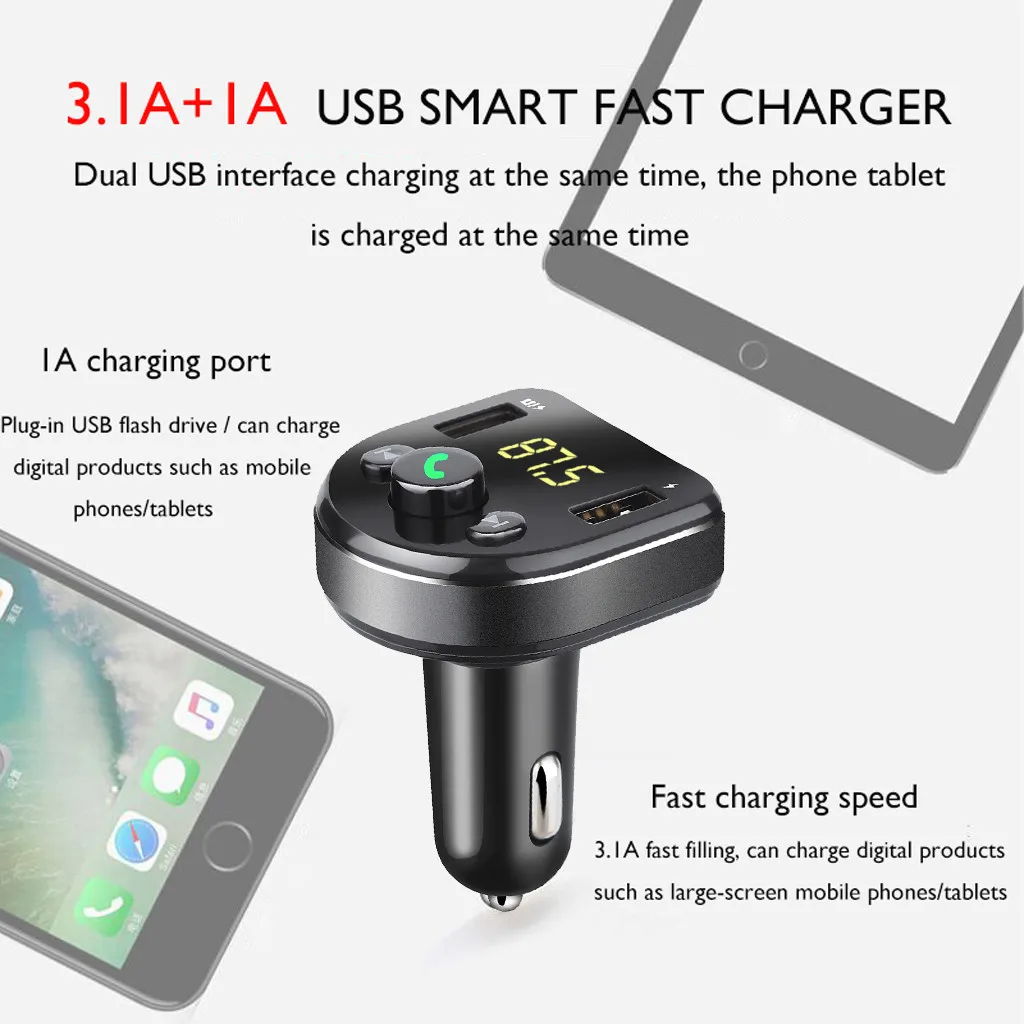 Автомобильный комплект громкой связи, беспроводной Bluetooth, fm-передатчик, светодиодный mp3-плеер, USB зарядное устройство, FM модулятор, автомобильные аксессуары
