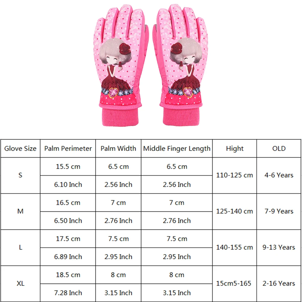 Новые детские лыжные перчатки, утепленные лыжные перчатки принцессы, Детские Водонепроницаемые Нескользящие зимние теплые перчатки для мальчиков и девочек