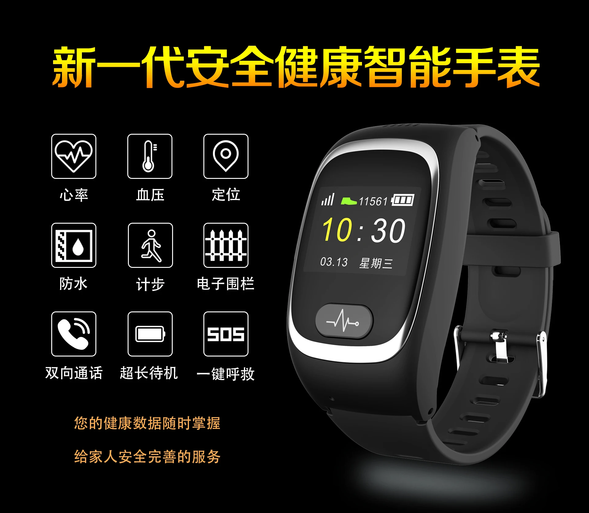 Смарт-часы для пожилых людей, кровяное давление, пульсометр, GPS, позиционирование, анти-потеря, большой шрифт, карта, вызов, SOS, ключ, вызов для помощи