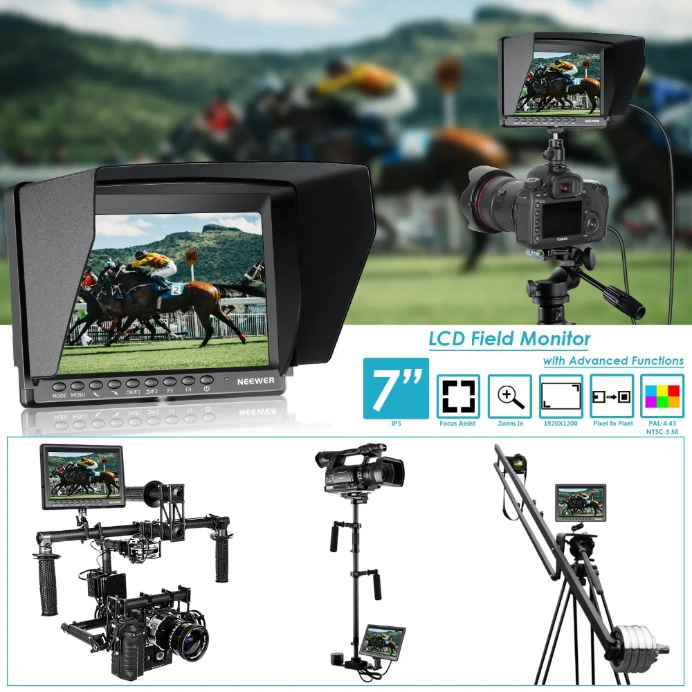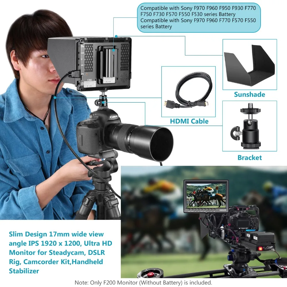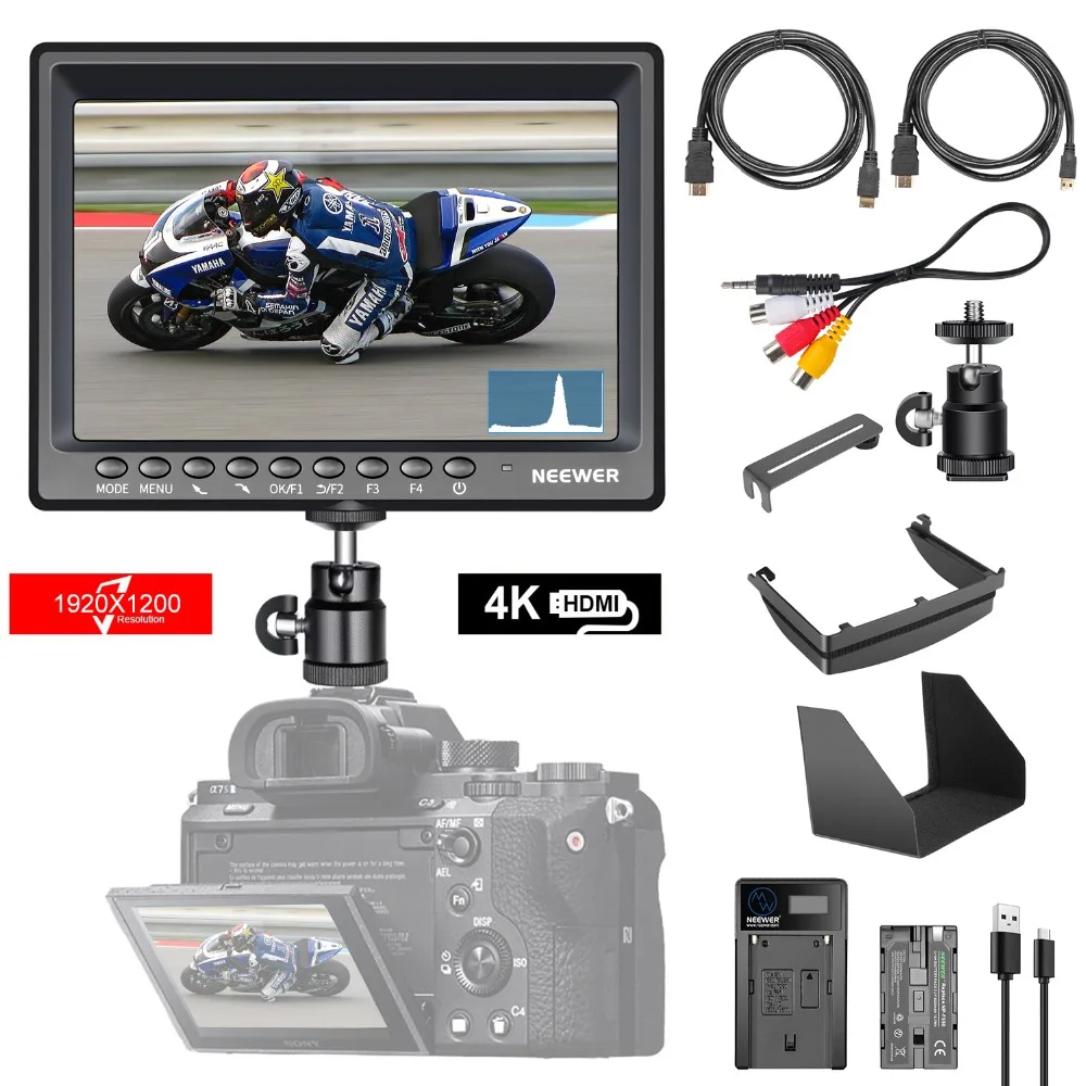 7-дюймовый полевой монитор для камеры Neewer F200, HD Video Assist Slim IPS 1920x1200, 4K, HDMI вход 1080p с гистограммой, фокусировкой, экспозицией, литий-ионный аккумулятор/USB-зарядное устройство для DSLR-камеры s, установка для видеосъемки