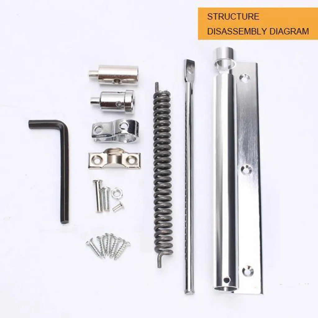 Дверной Светильник изготовлен из коммерческого алюминиевого сплава, пружинная работа, полностью автоматическое закрытие, дает вам легкий и безопасный срок службы, защищает вашу дверь и замок.