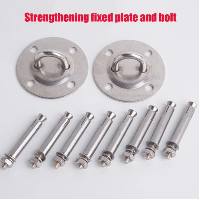 Аксессуары: 2 шт. 1 м 6 кольцо круглого сечения на тонких бретелях (yoga гамак Удлинительный ремень), 1 комплект фиксированных диски, 4 винтов застежками, 1 сумка для хранения, 1 мешок из полиуретана с открытыми порами
